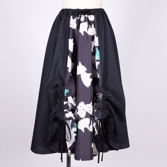 MINT NeKO パッチワークフレアスカート BK-GRN