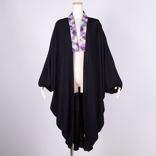 【一点物】TKg 紫の剥合わせ 薄手丸首羽織り