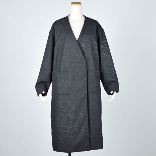 gouk 曼珠沙華をプリントしたストライプ柄のコート