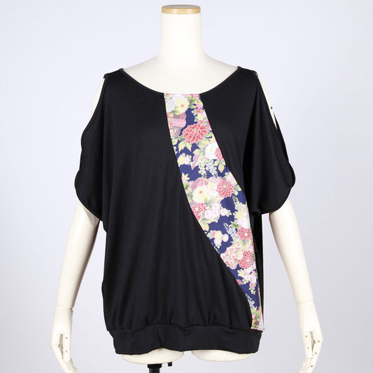 【一点物】TKg 秋の花和柄 肩スリットトップス