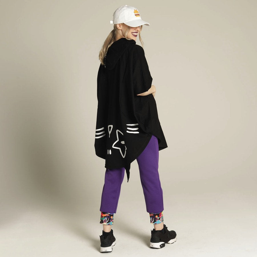 It is a simple poncho -like parka when viewed from the front, but on the hem on the back, a cat "Paul" featuring cat ears and star -shaped makeup is greatly printed.