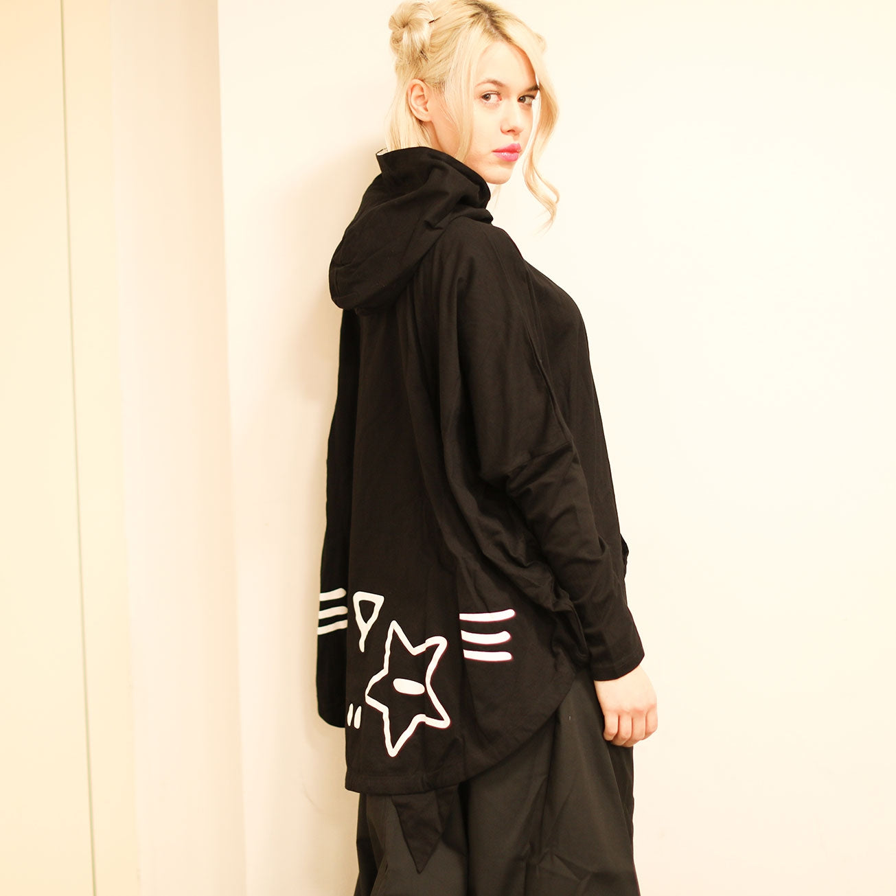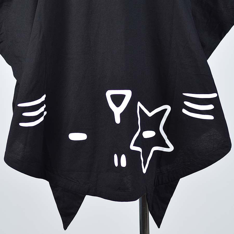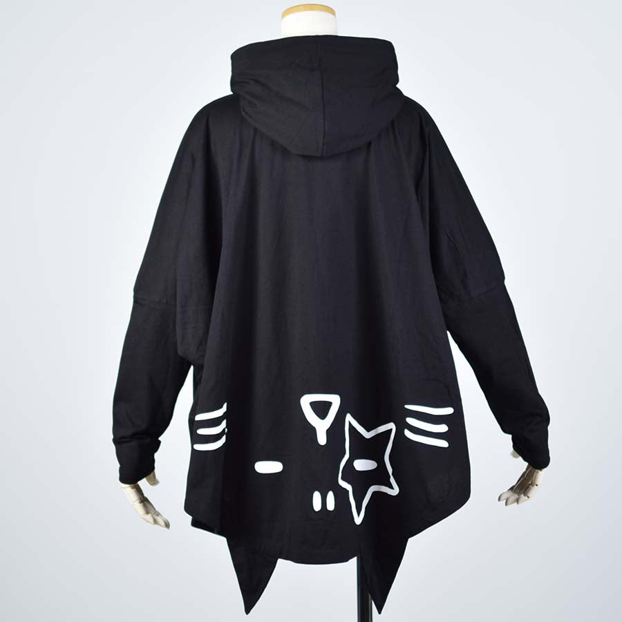It is a simple poncho -like parka when viewed from the front, but on the hem on the back, a cat "Paul" featuring cat ears and star -shaped makeup is greatly printed.