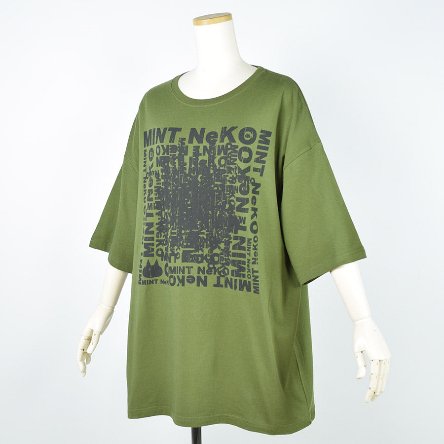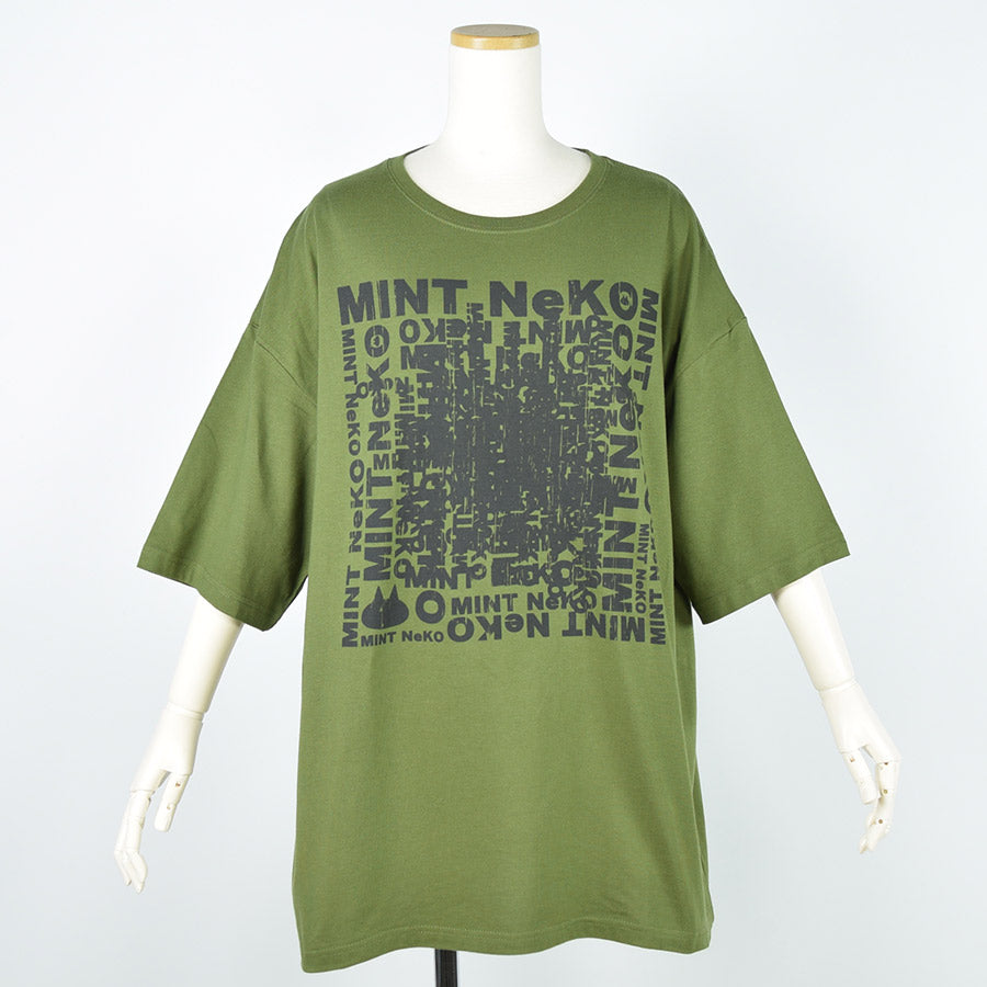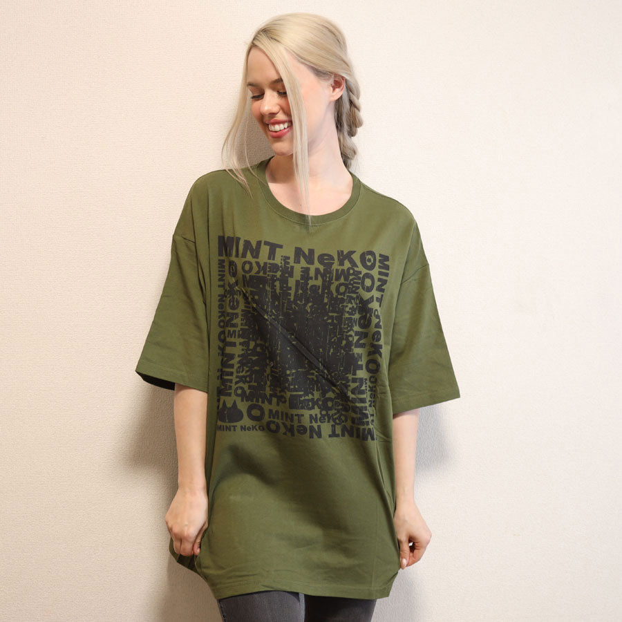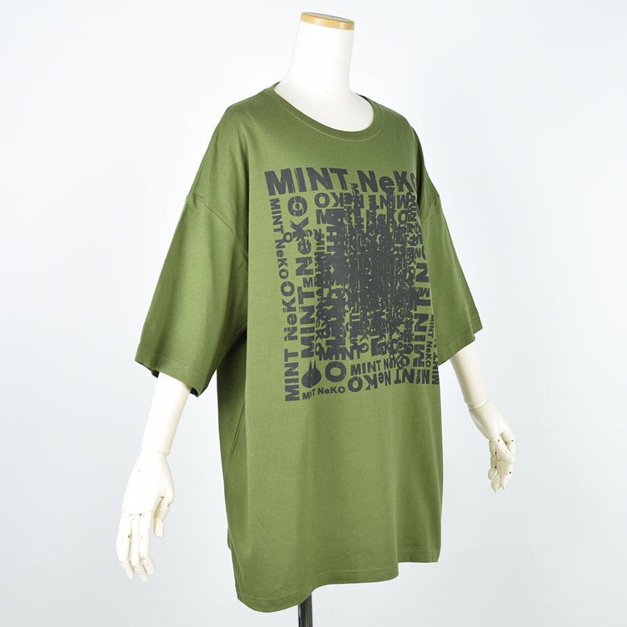 A cut -and -sew featuring a graphic with a Mint Neko logo in various sizes.
