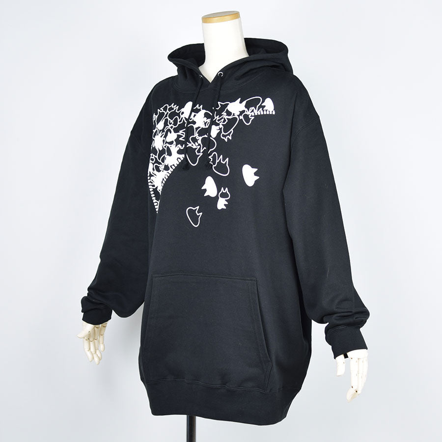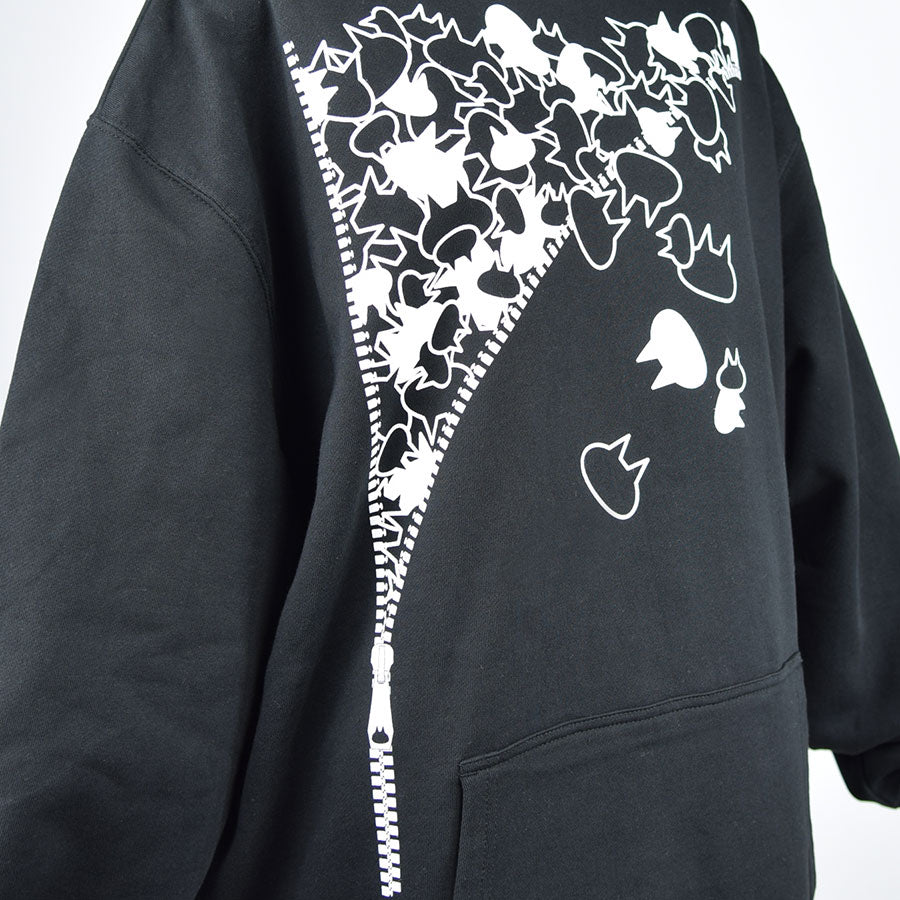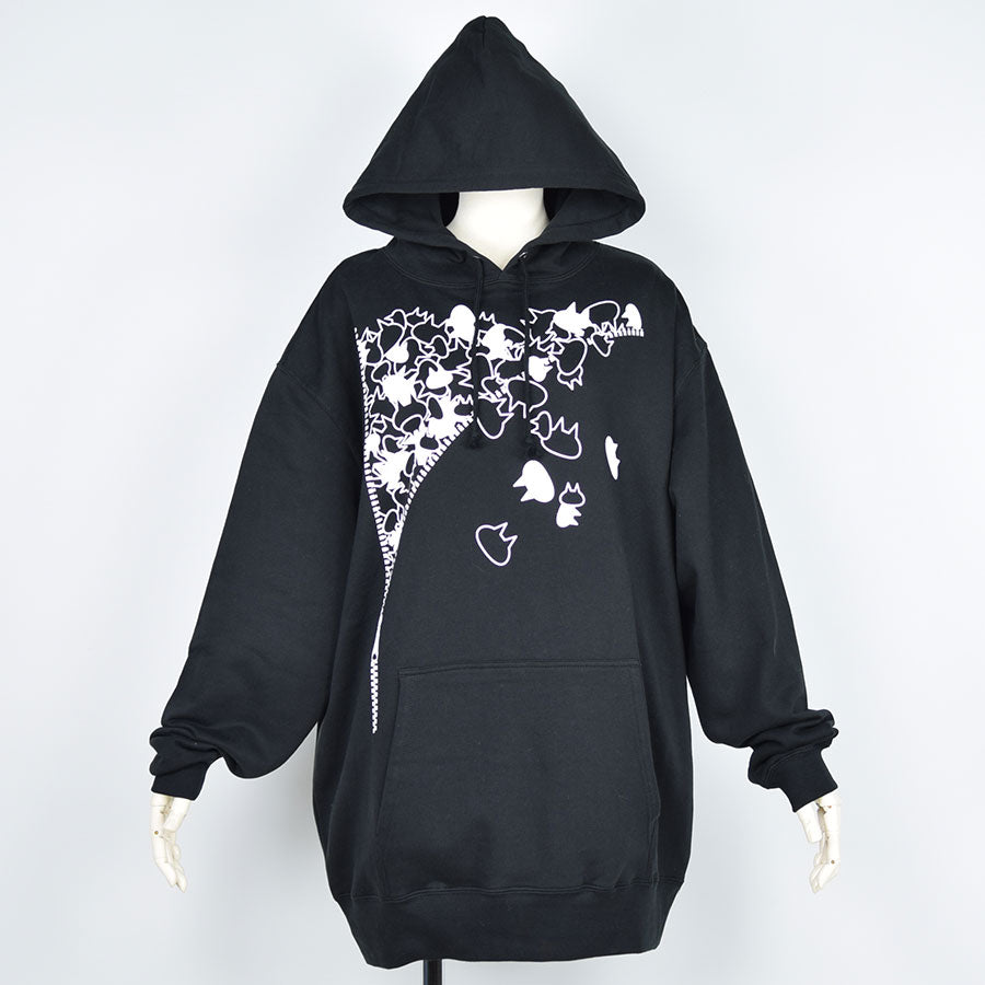 It is a unique design where the silhouette of the cat spills from the open zipper.