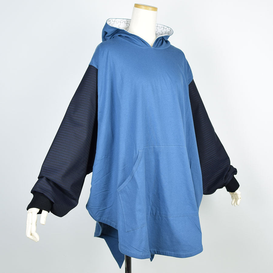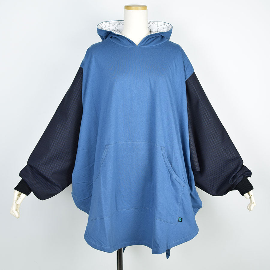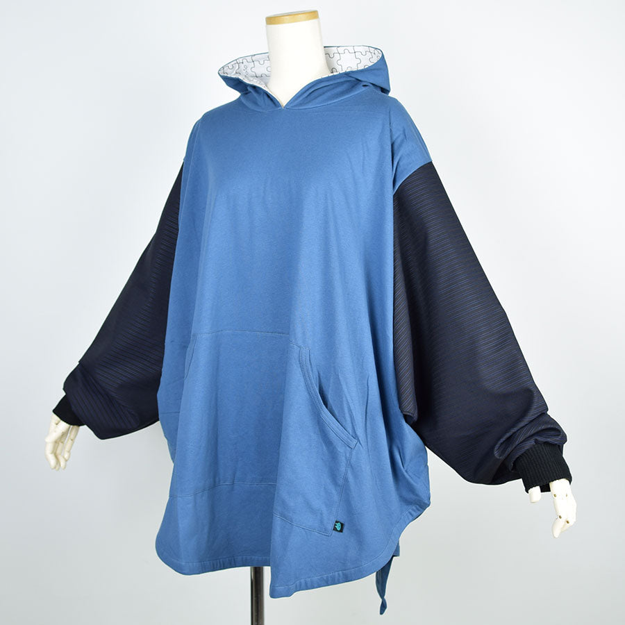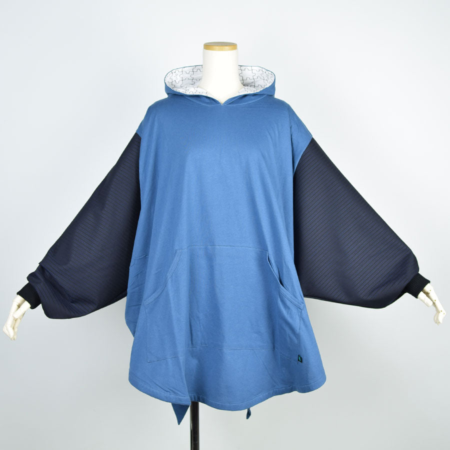 We emphasize the poncho feeling by widening the armhole and making the sleeves with plenty of volume.