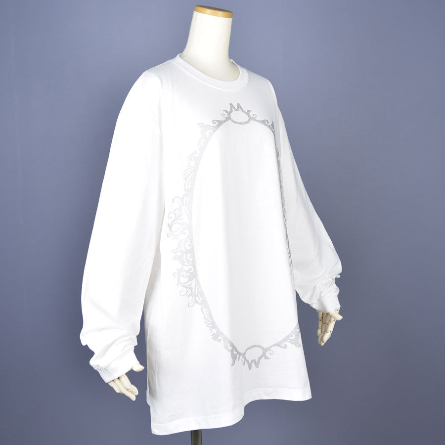 A cut -and -sew with a graphic inspired by the old mirror frame and the fence design.