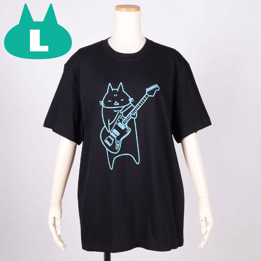 MINT NeKO Wagahai and Guitar T-shirt BK-BL / L