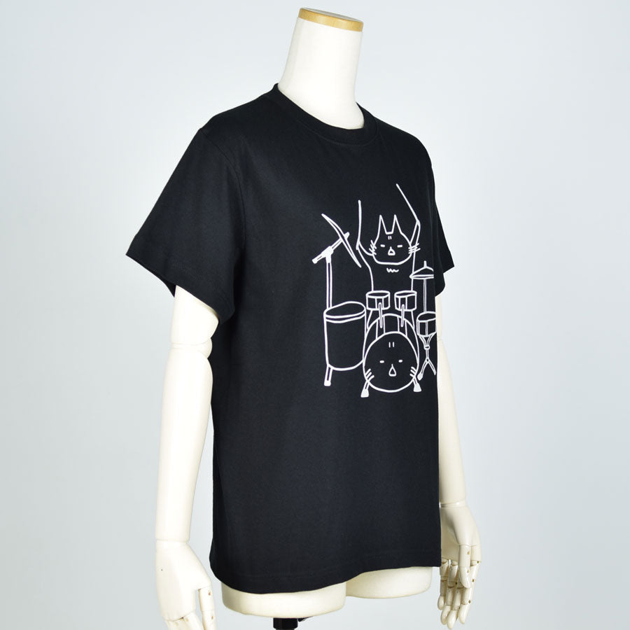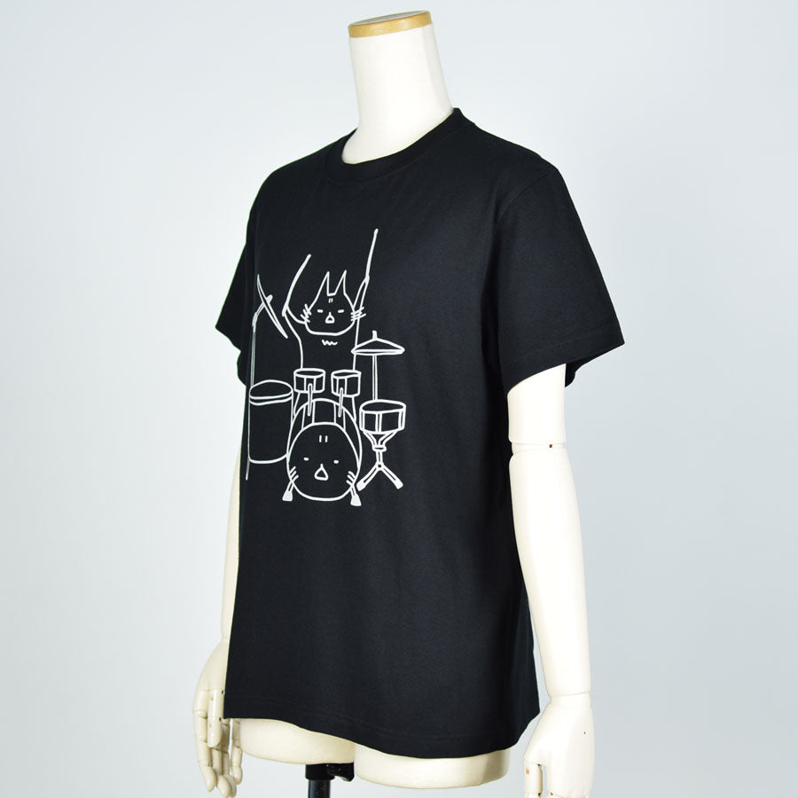 A T -shirt that prints a cat that pours a young energy into a drum, a Tama graphic.