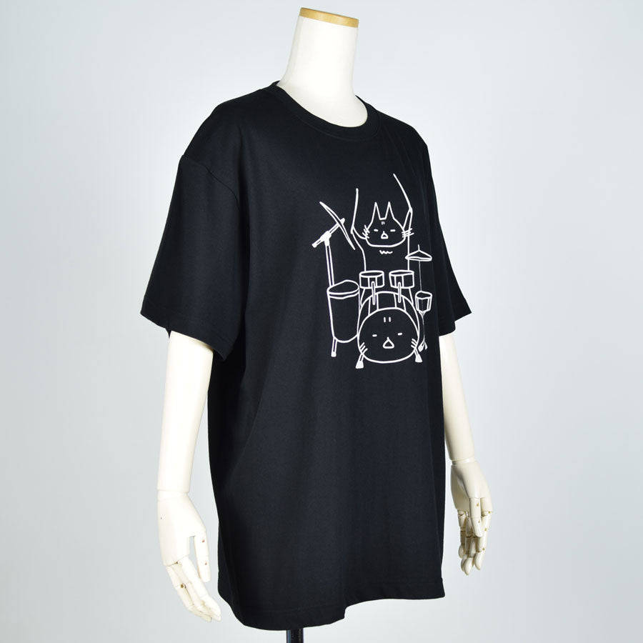 A T -shirt that prints a cat that pours a young energy into a drum, a Tama graphic.