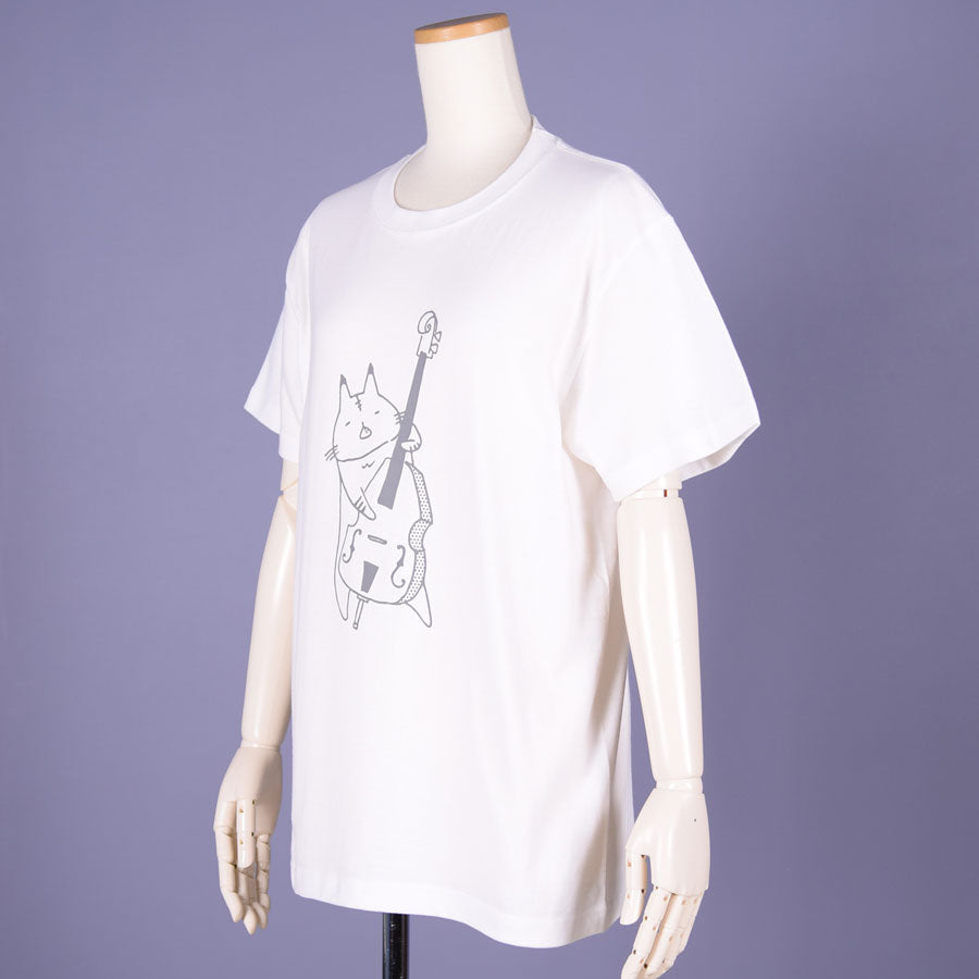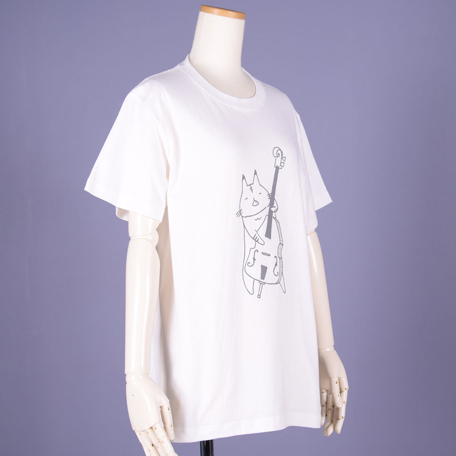A cat in charge of the wood bass in the psychobili band "Hesirable Cat".
