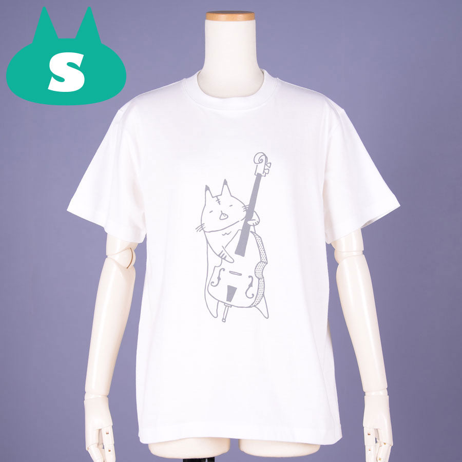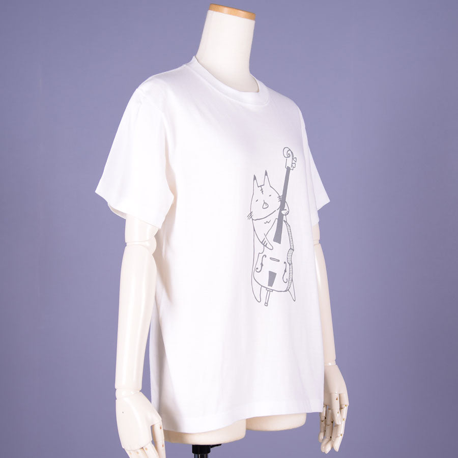 A cat in charge of the wood bass in the psychobili band "Hesirable Cat".