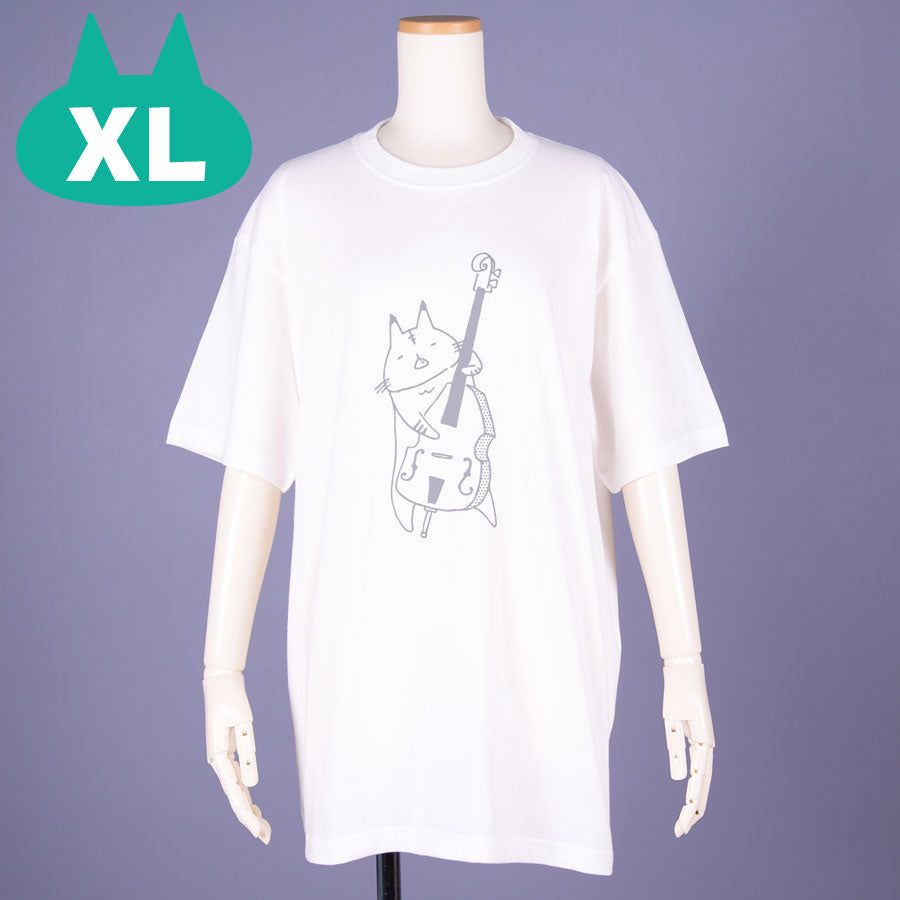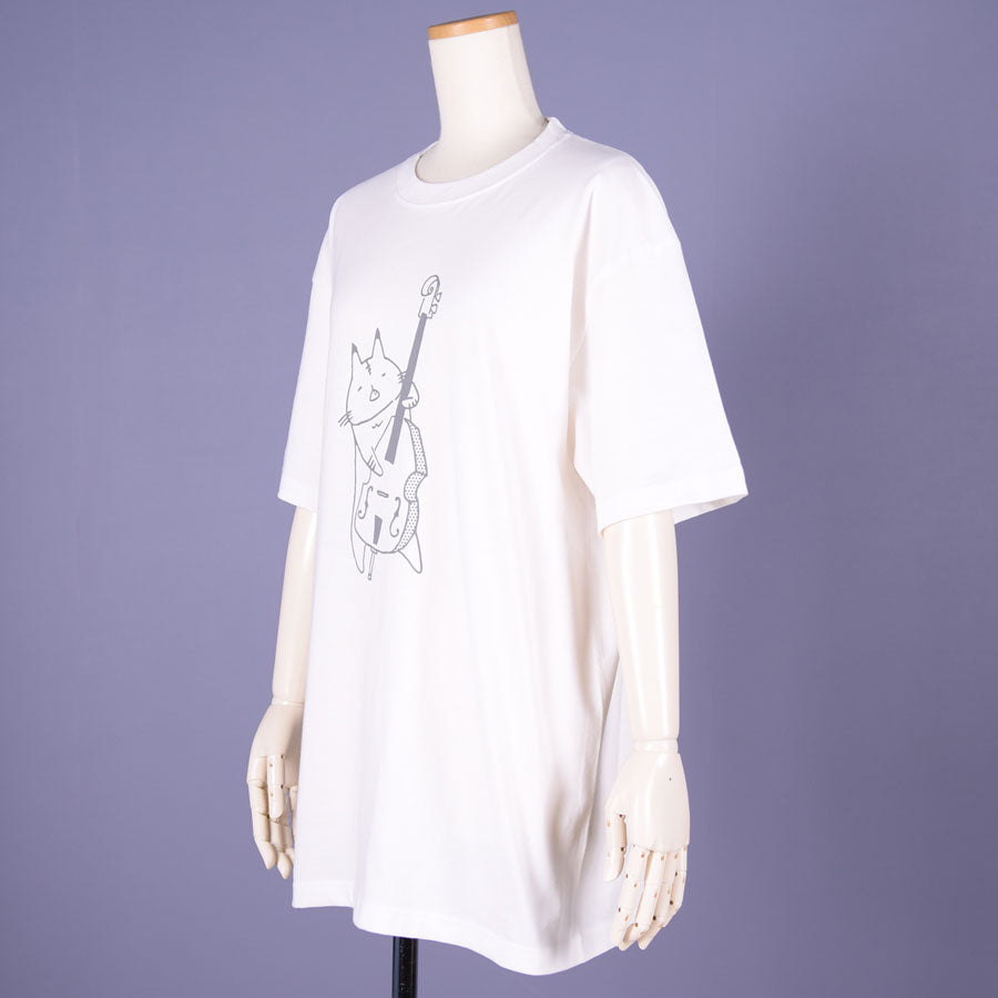 A cat in charge of the wood bass in the psychobili band "Hesirable Cat".