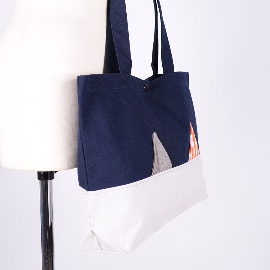 A tote bag made by combining canvas fabric with different colors between the bottom and the main unit.
