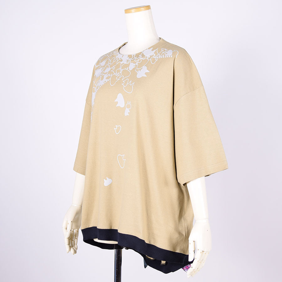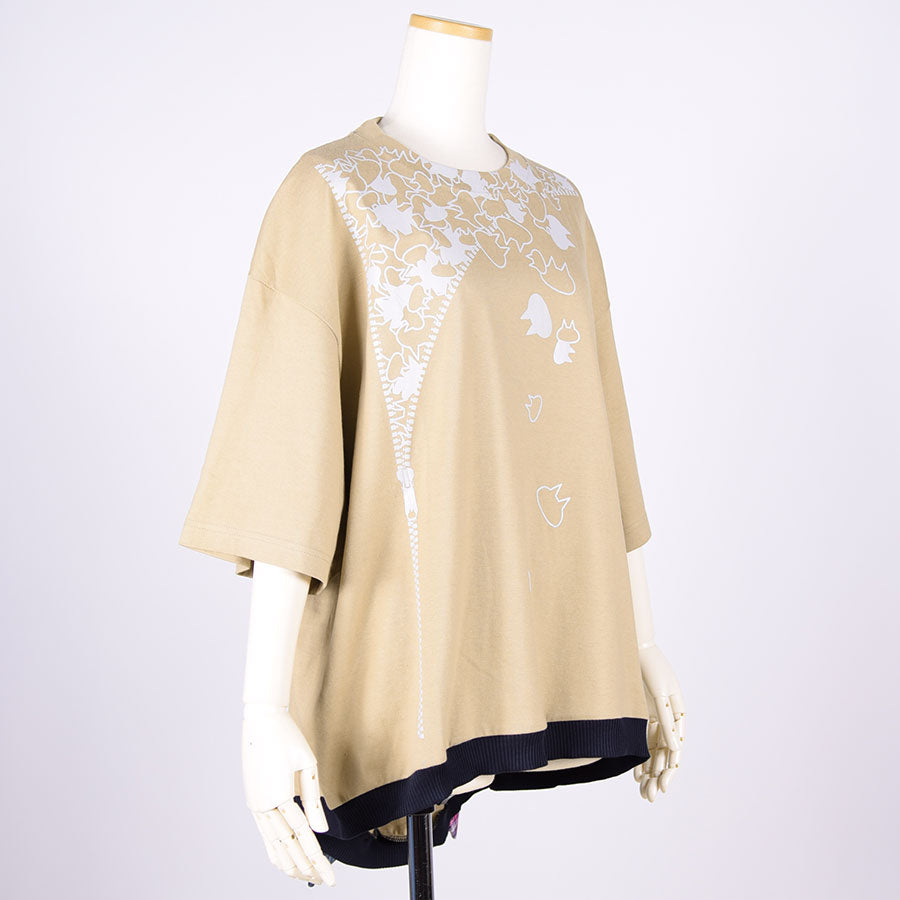 A top in which ribs and cats are switched to the hem drawing a curve.