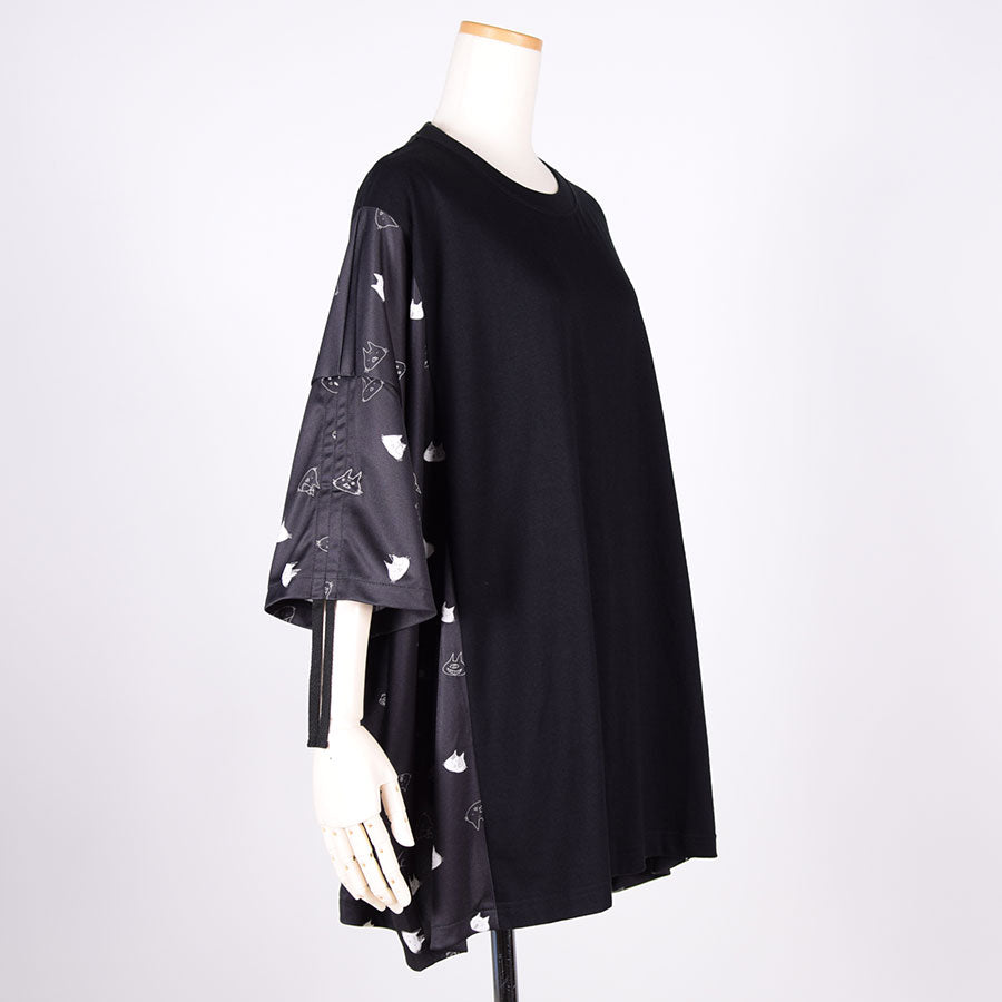 A top made in a wide silhouette combining the original textile and cotton sheet.