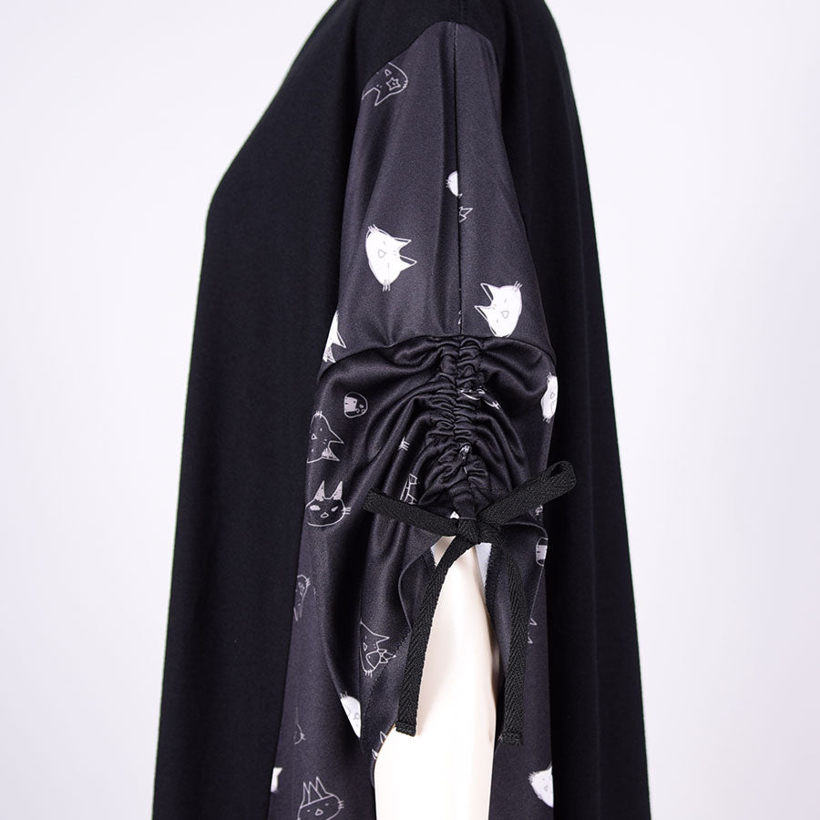 Gathering can be handed over with a string attached to both sleeves, and the silhouette can be changed.