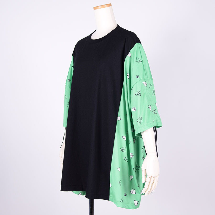 MINT NeKO Sleeve Gather Top / BK-GRN