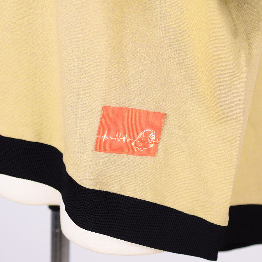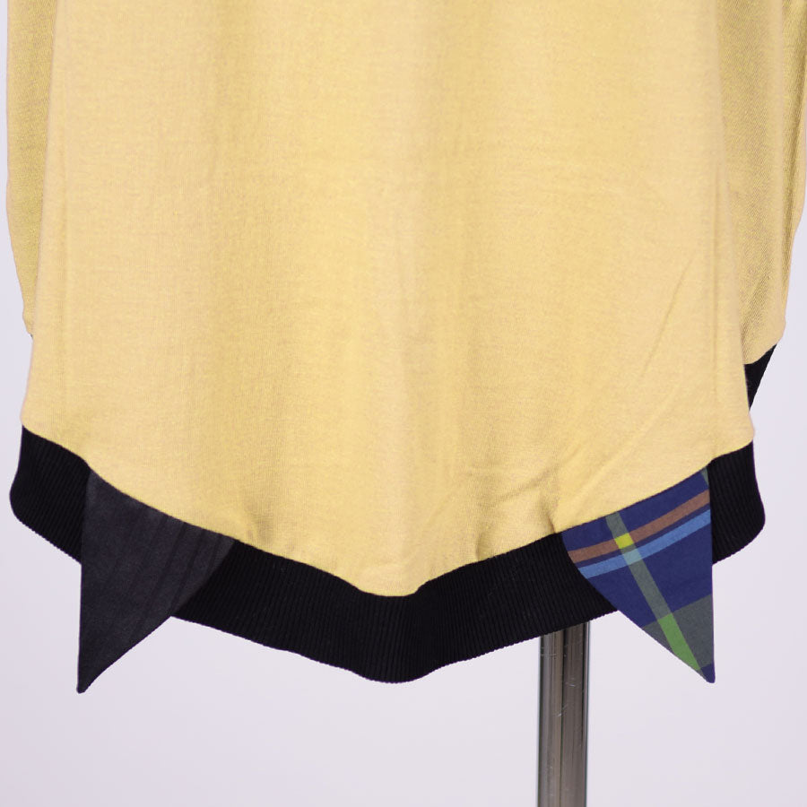 A top in which ribs and cats are switched to the hem drawing a curve.