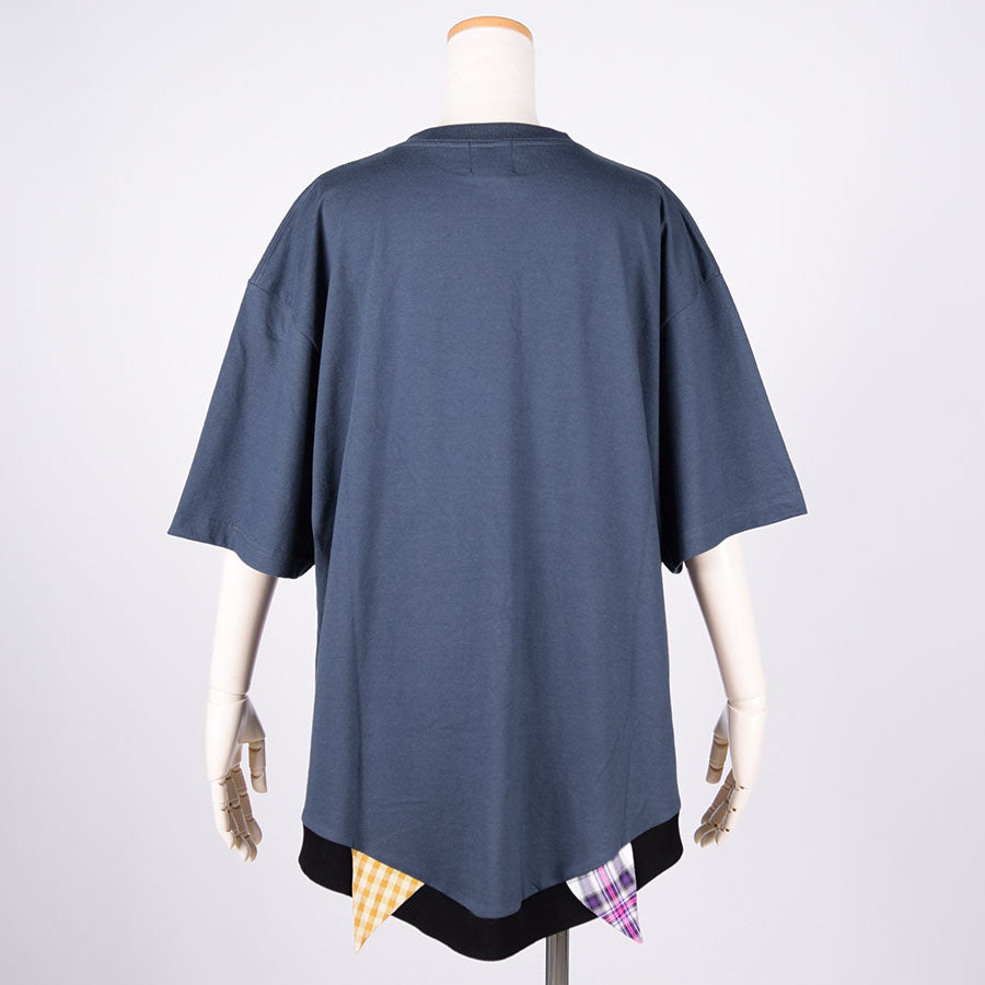 A top in which ribs and cats are switched to the hem drawing a curve.