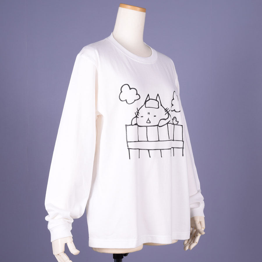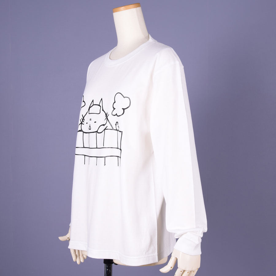 A long -sleeved T -shirt printed with wagahai taking a bath.