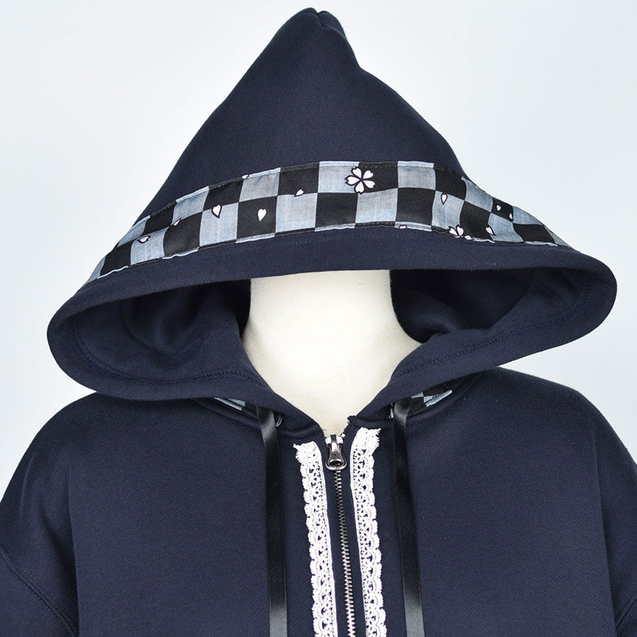 * You can choose one of the main body color (blue, red, black), the front lace decoration (black, white, nothing), and one of the six types of Japanese patterns.