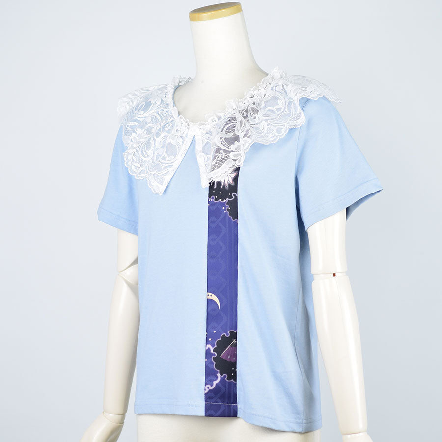 [Ended order] Moriguchika lace collar tops (blue) (3 sizes)