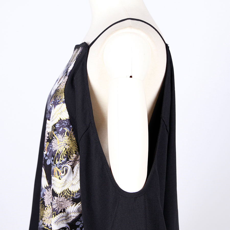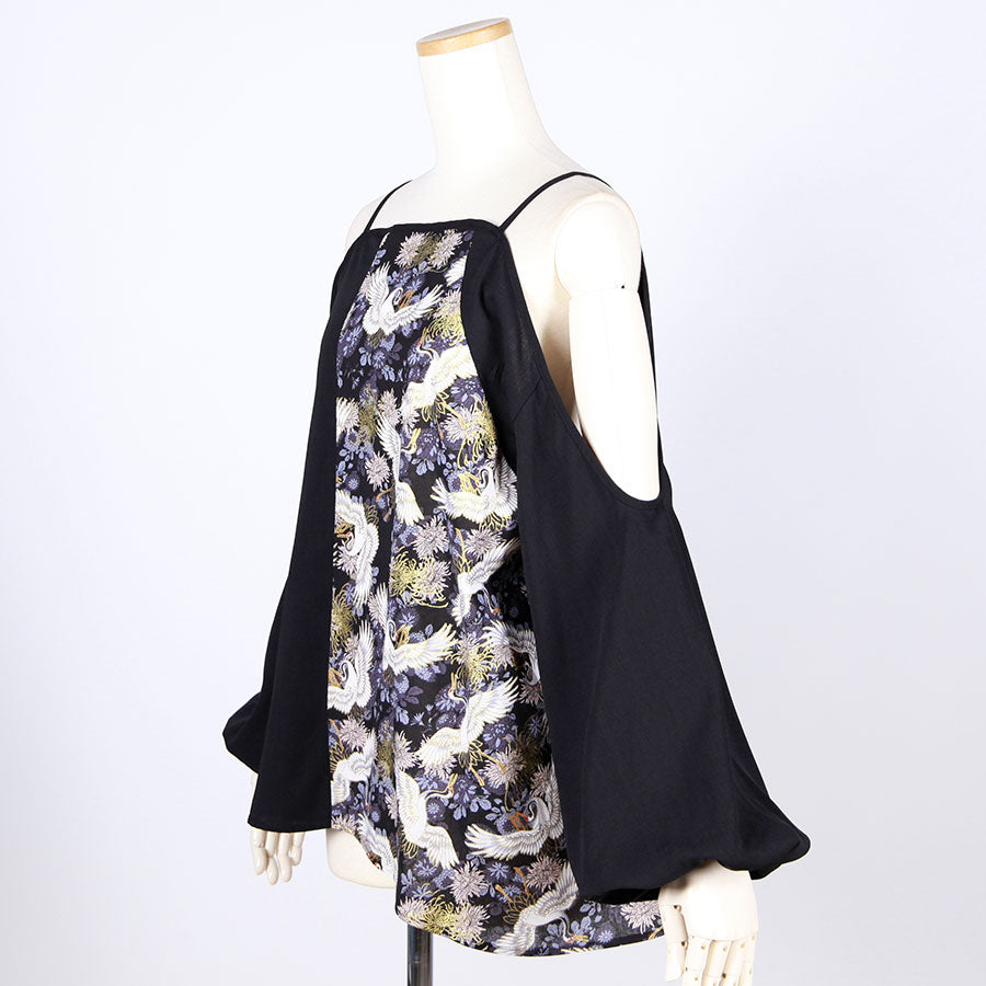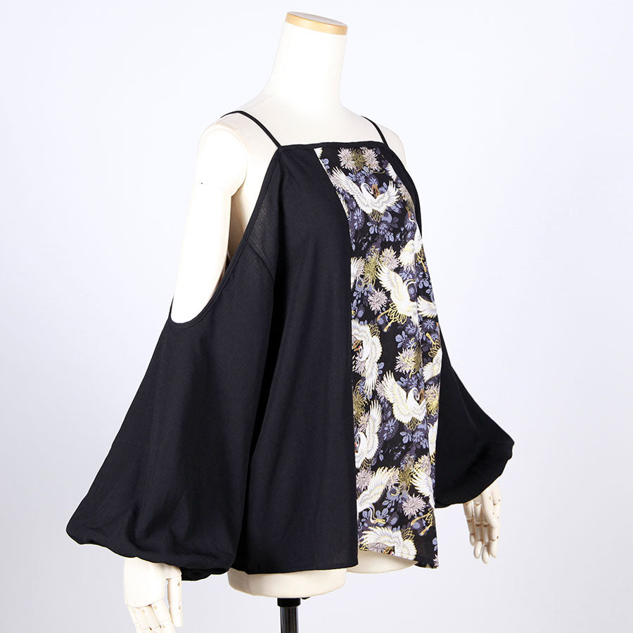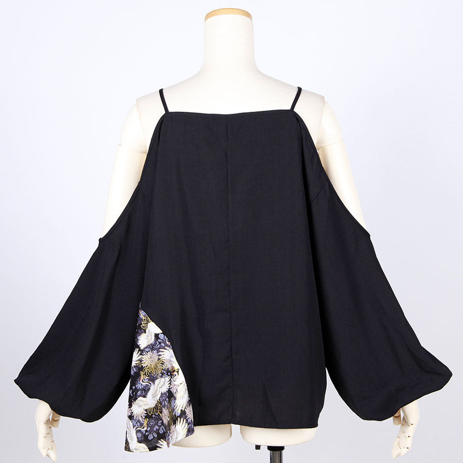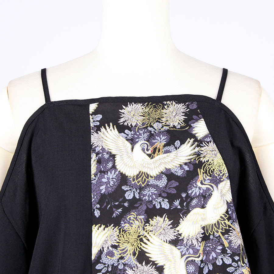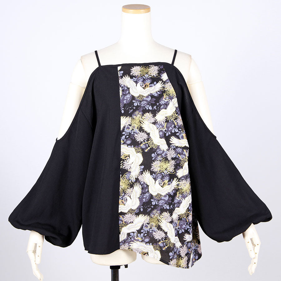[One-of-a-kind item] TKg Crane and Chrysanthemum flower, Off-shoulder Top