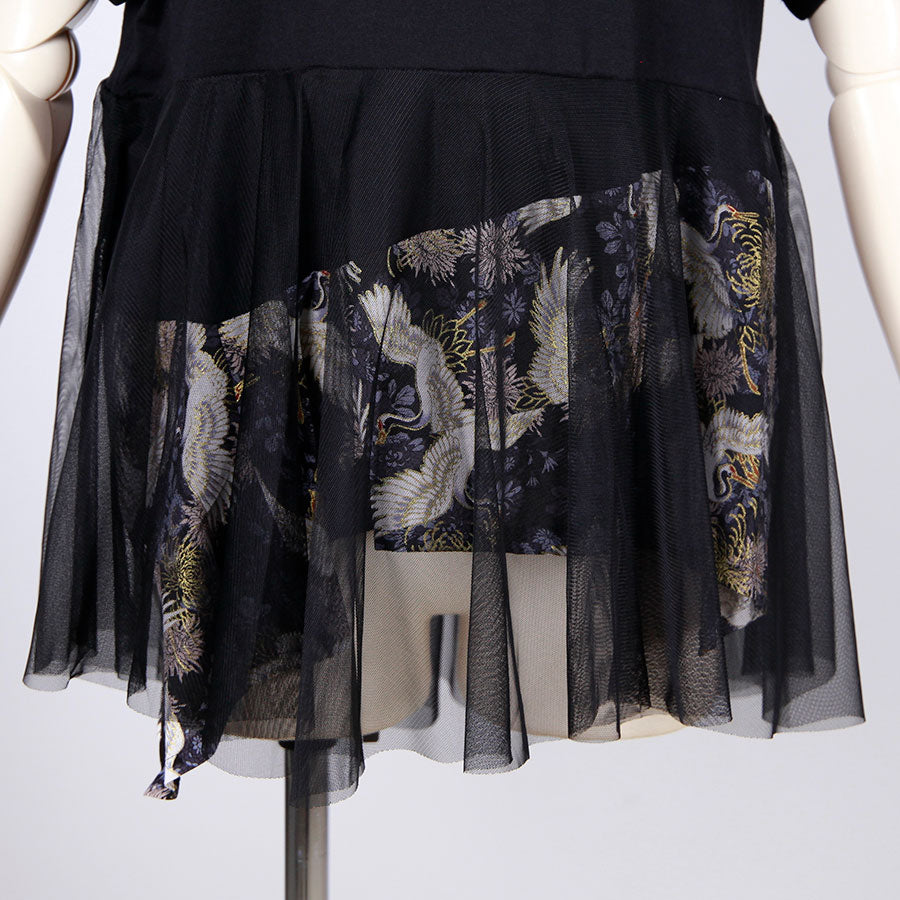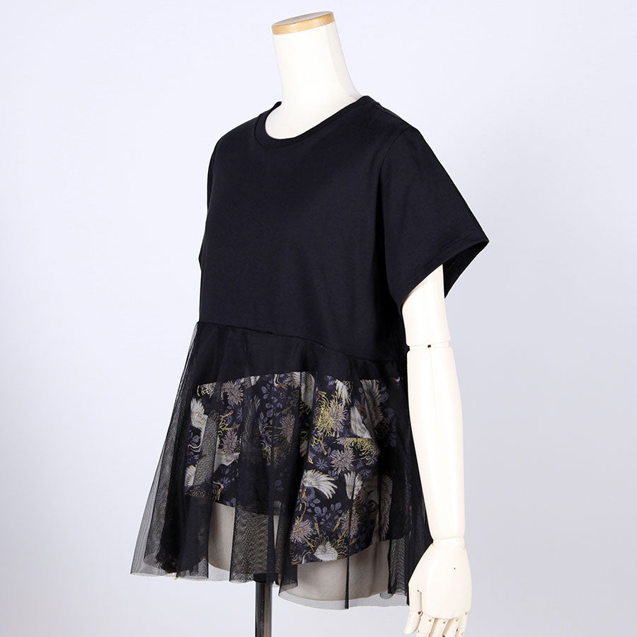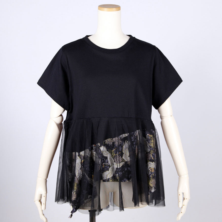 [One-of-a-kind item] TKg Crane and Chrysanthemum flower, goldfish hem top