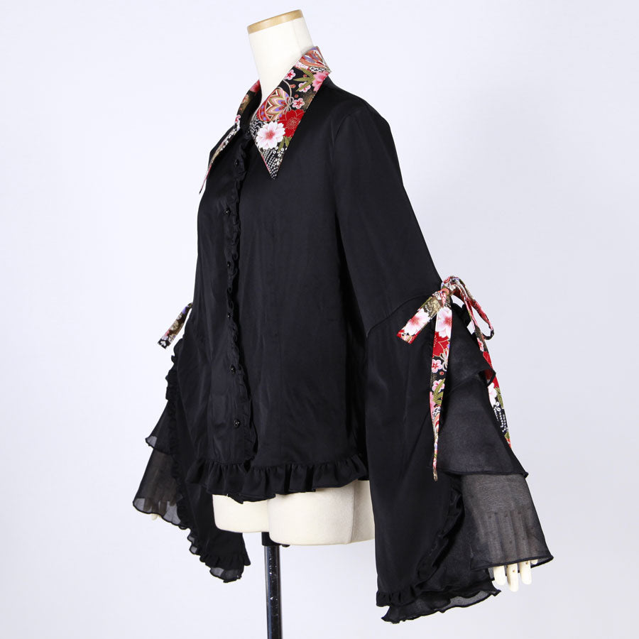 [One-of-a-kind item] TKg Flying Japanese Flower Girly Blouse