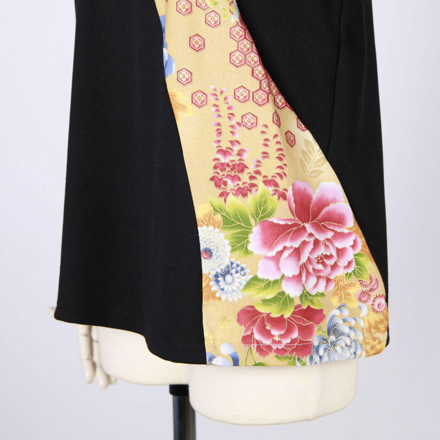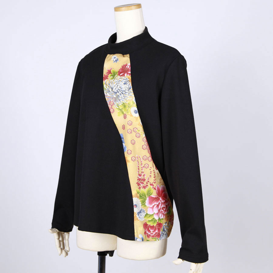 Tops with Japanese patterns depicting the four seasons of nature that symbolize Japan, such as peonies, rangiku, cherry blossoms, autumn leaves, waves, etc. standing in the daytime brightness from the center front to the left side and back.
