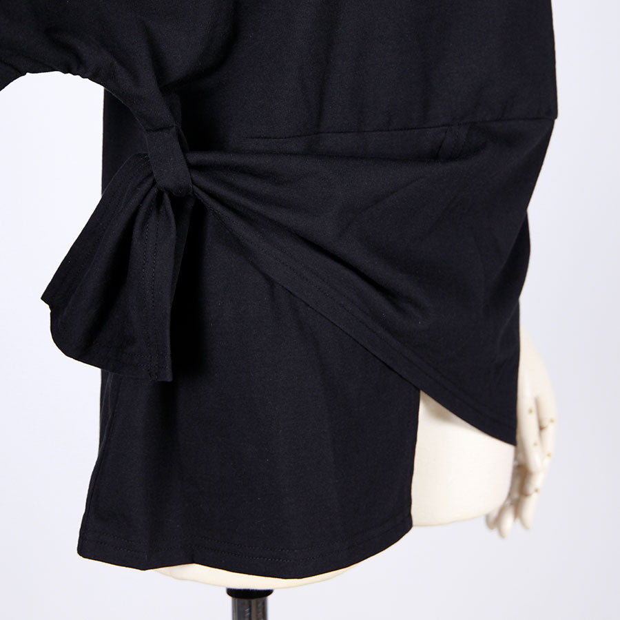 This top can be accented by passing the left hem through the loop on the right waist.