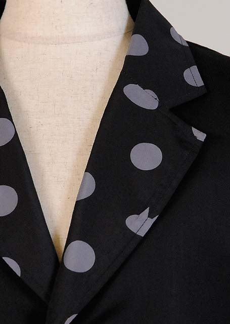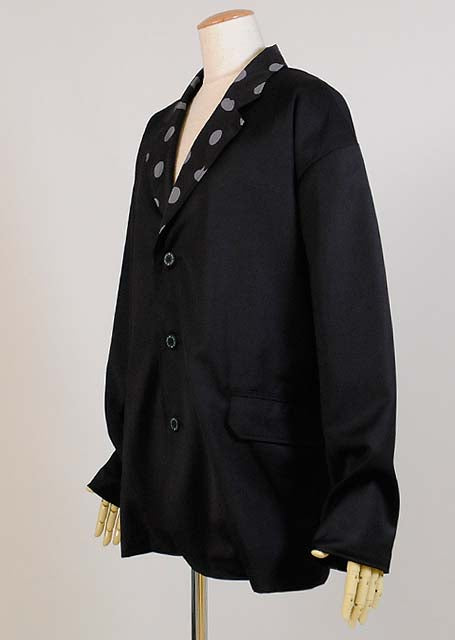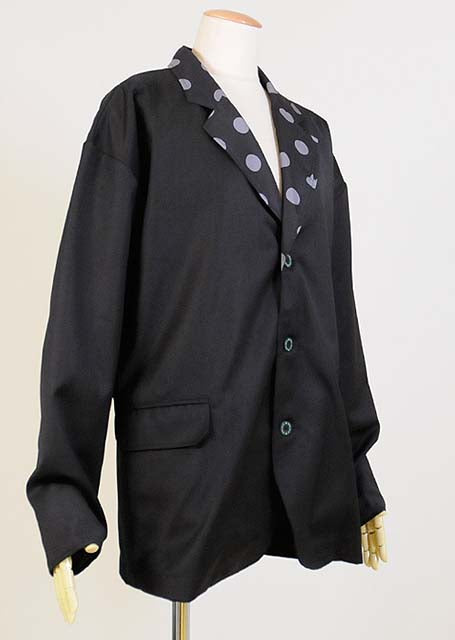 ドロップショルダーやダブルステッチなどでカジュアルな表情に仕上げたジャケット。 インパクトのあるドット柄がラペルと袖口内側にプリントされています。 是非同じシリーズのパンツとのセットアップにチャレンジしてください。 ※プリント柄の見え方はそれぞれ異なります。 <本体サイズ>肩幅:約58cm バスト:約113cm 着丈:約72cm 袖丈:約56cm 腕周り:約40cm <本体素材>ポリエステル65% レーヨン35% <別布素材>ポリエステ100% <袋布素材>綿100% ※写真はサンプルの為、実際の商品と仕様やサイズ等が異なる場合があります。 ※商品は平置き計測により採寸されていますので、お手持ちのアイテムと商品のサイズを照らし合わせてからご購入されることをお勧めします。