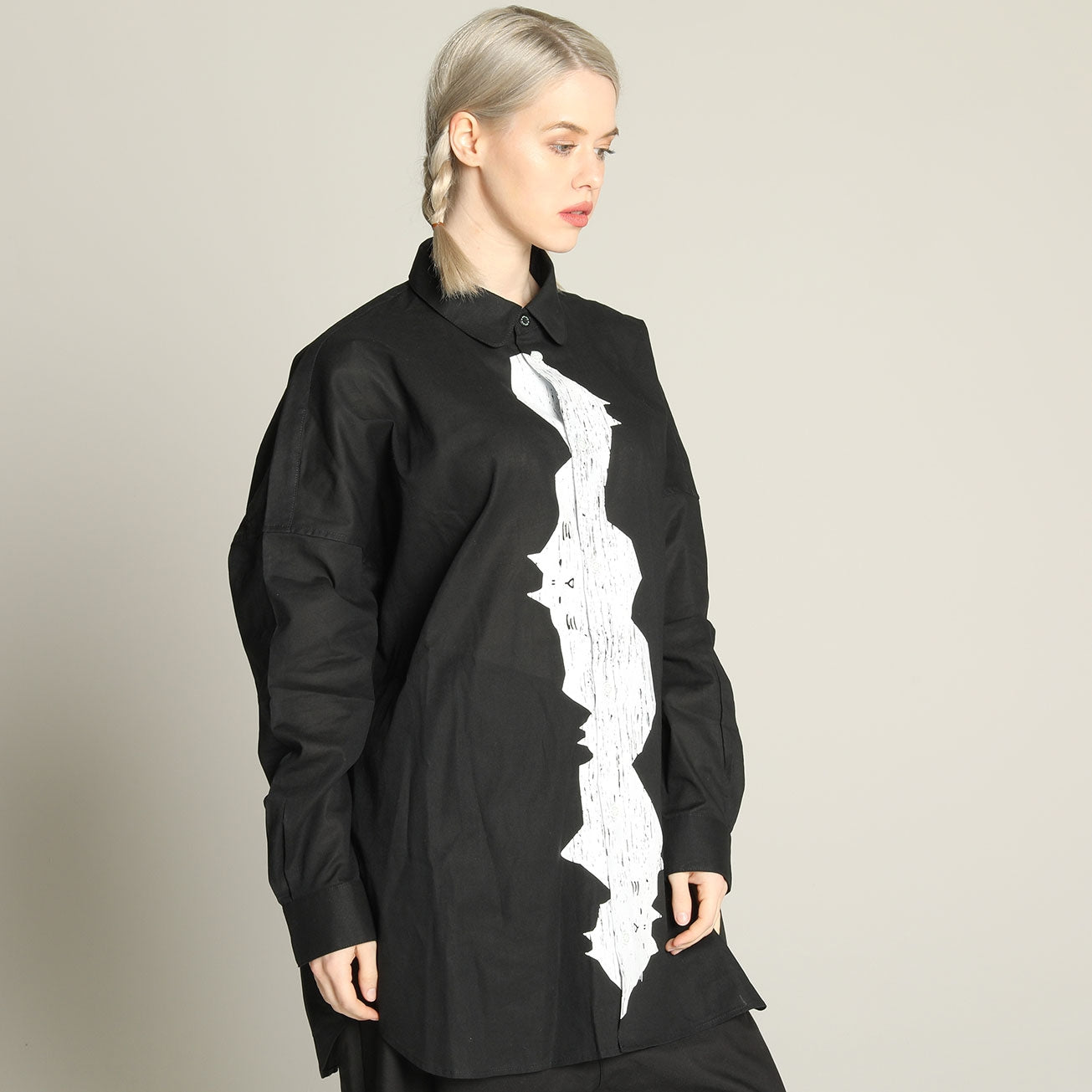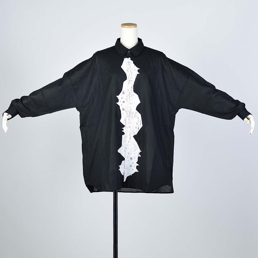 シャツに大胆にプリントを入れるという意外性がインパクトのあるアイテムです。