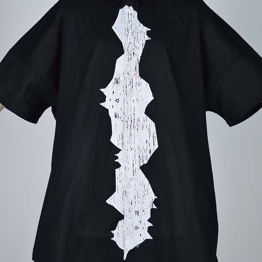シャツに大胆にプリントを入れるという意外性がインパクトのあるアイテムです。