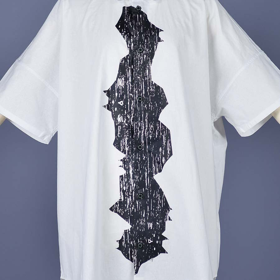シャツに大胆にプリントを入れるという意外性がインパクトのあるアイテムです。