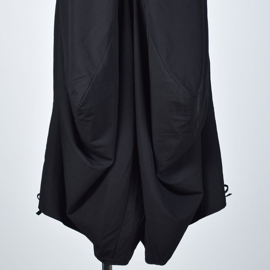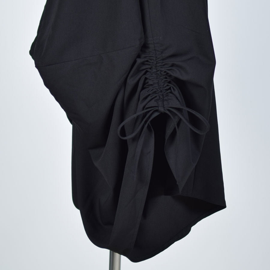 両脇に付いた紐を絞る事で着丈とシルエットが調節できます。