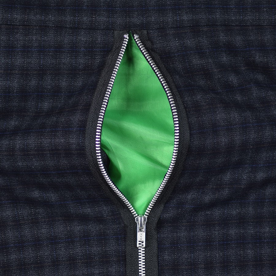 後ろのファスナーを開くことで蛍光カラーのマチがのぞく遊び心も。