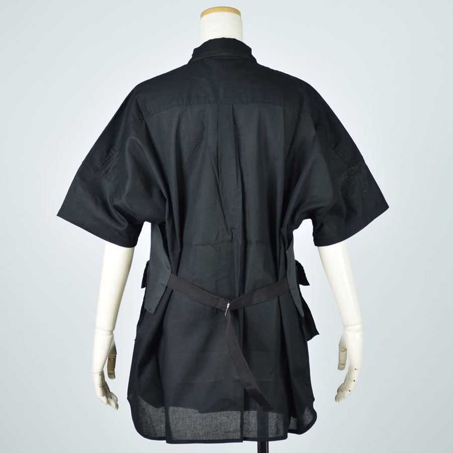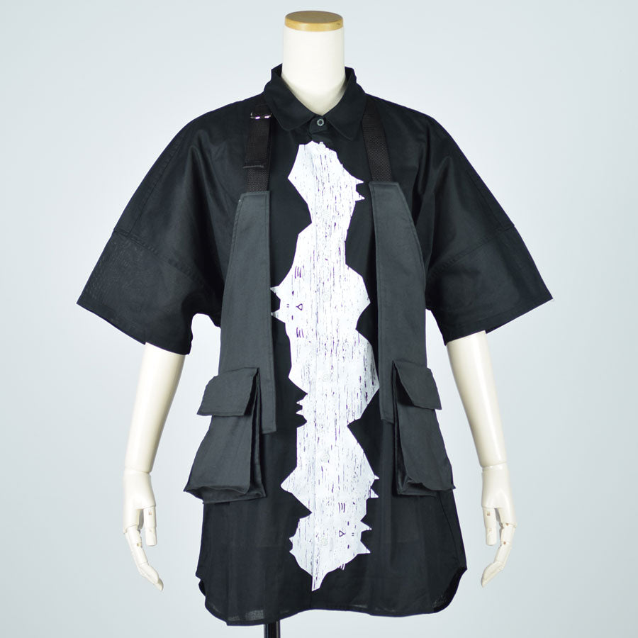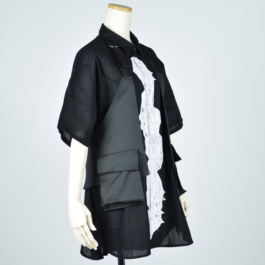 ワイドな身幅が特徴的なシャツにベスト風のポケットを取り付けたアイテム。