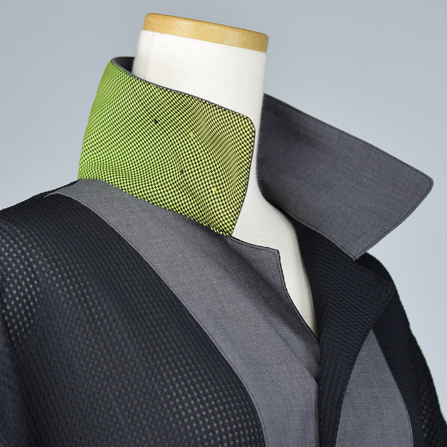 いろんな生地を組み合わせて仕立てた薄手ジャケット