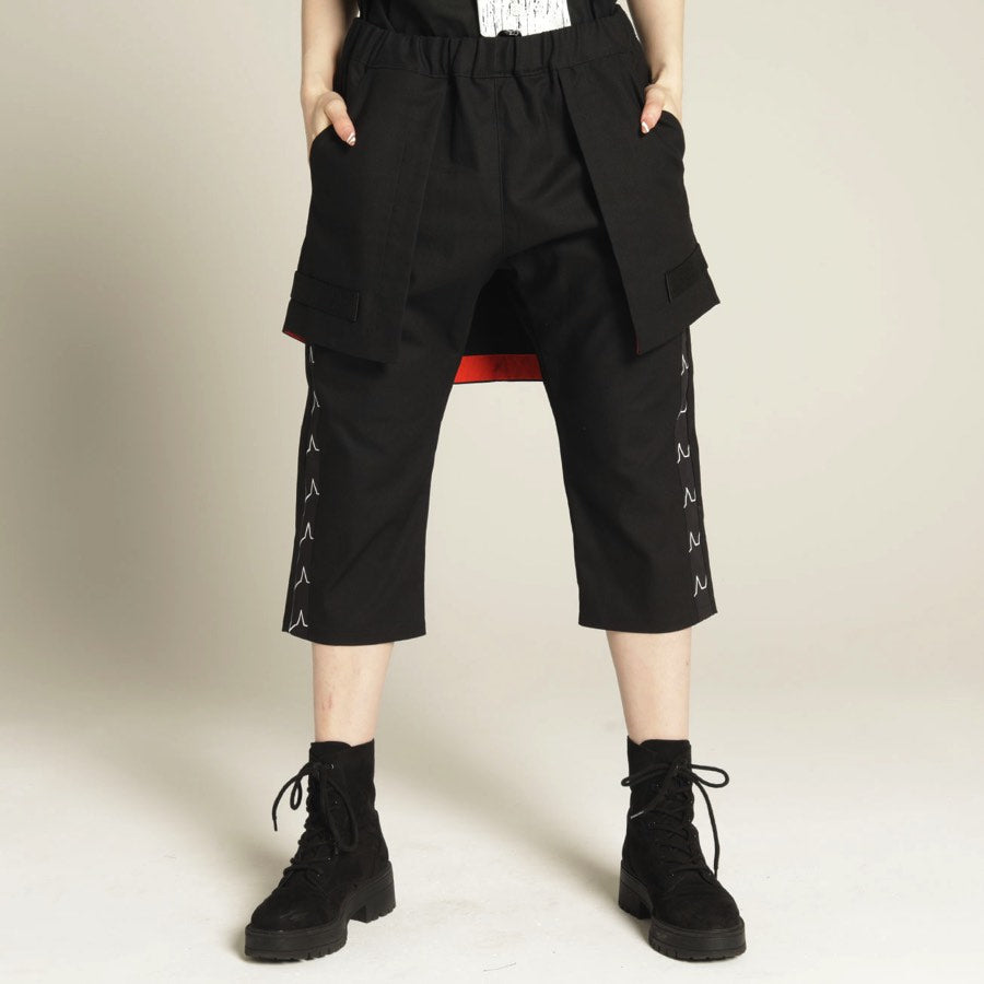 <本体サイズ>ウエスト:約76-88cm ヒップ:約104cm 股上:約30cm 総丈:約69cm もも周り:約54cm すそ周り:約38cm