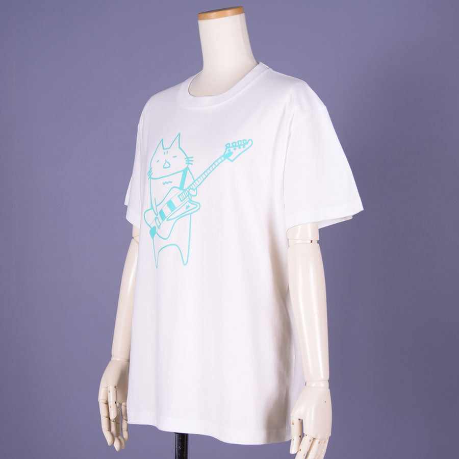 ベースを弾く吾輩をプリントしたTシャツです。