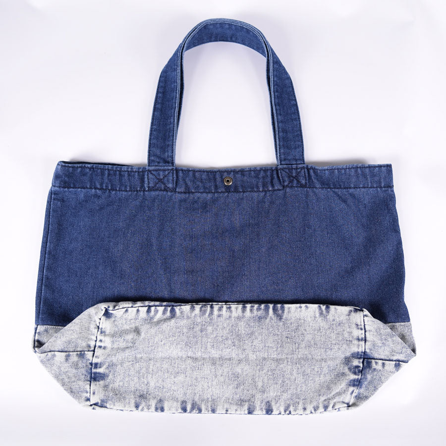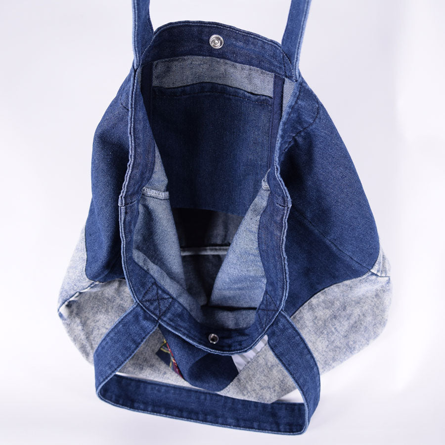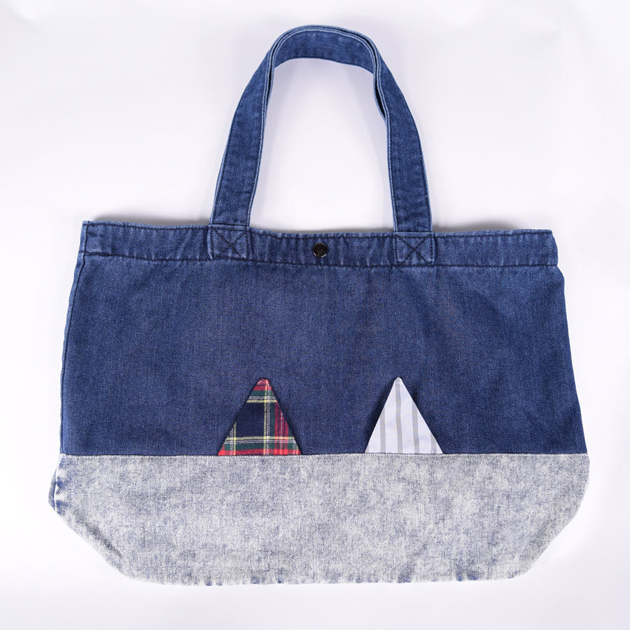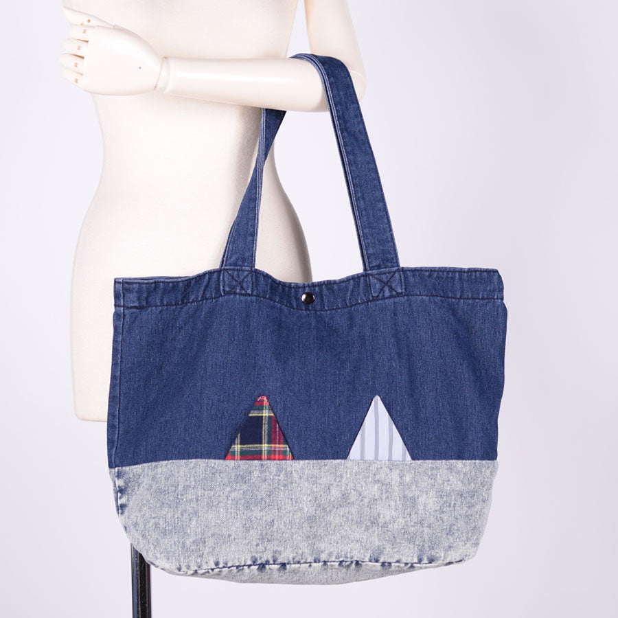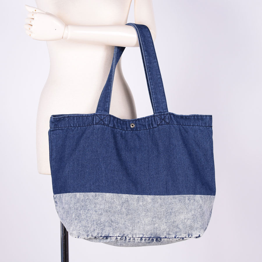 色落ち具合の違うデニムを組み合わせて作ったトートバッグ。