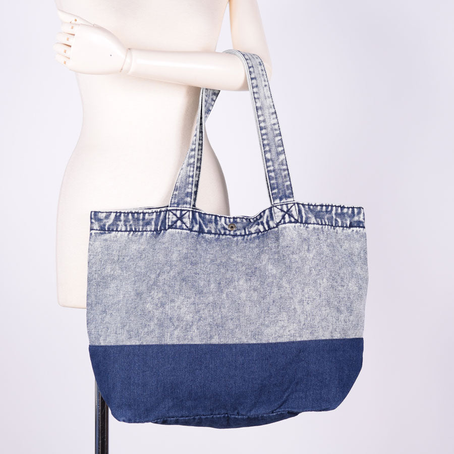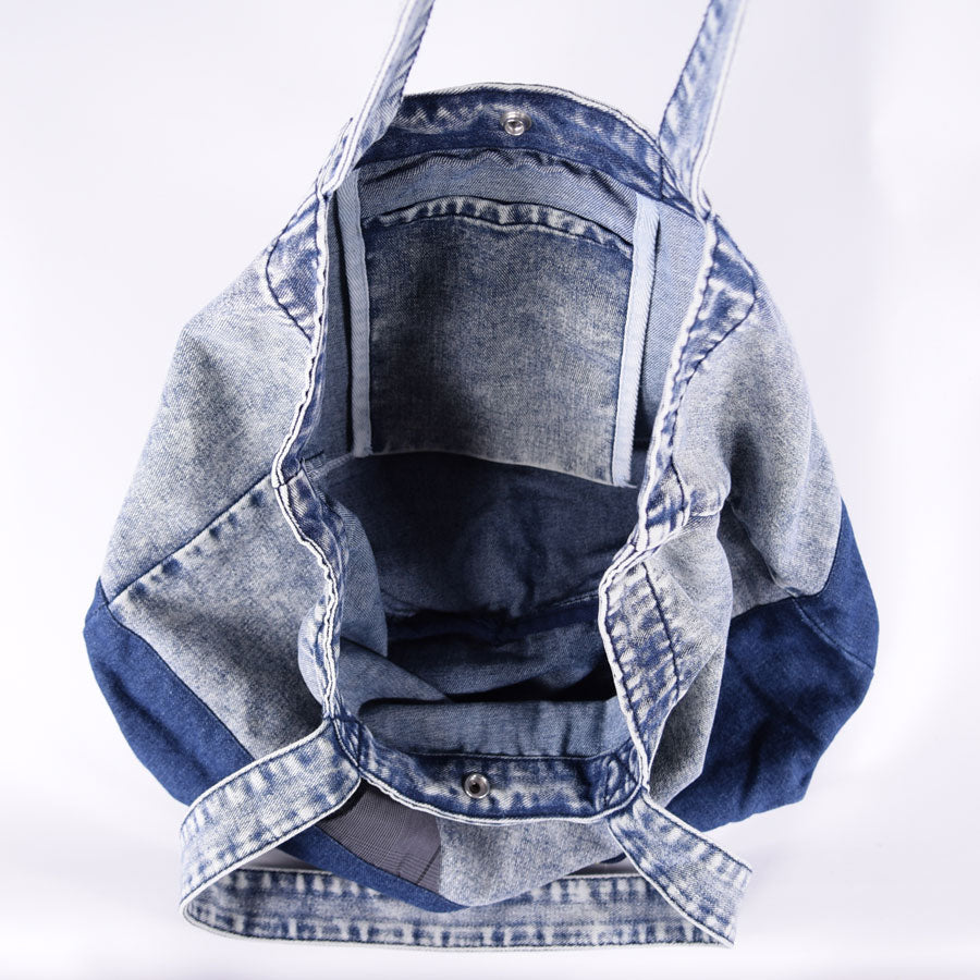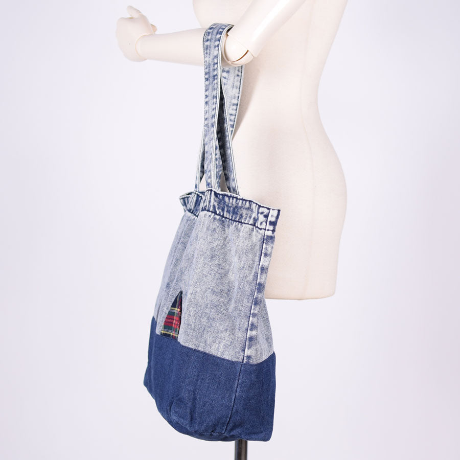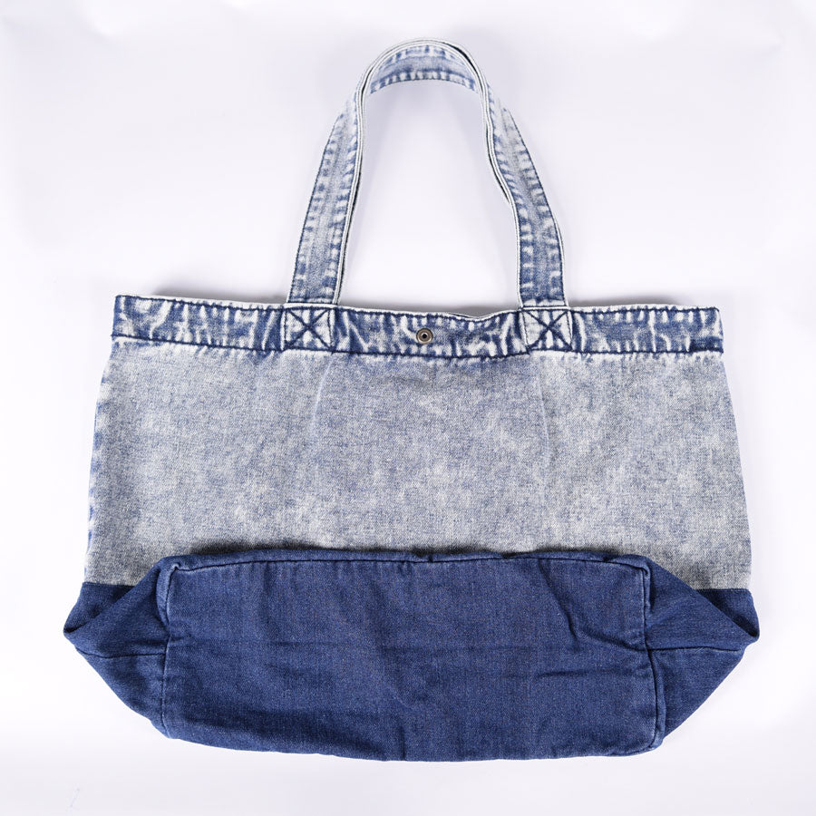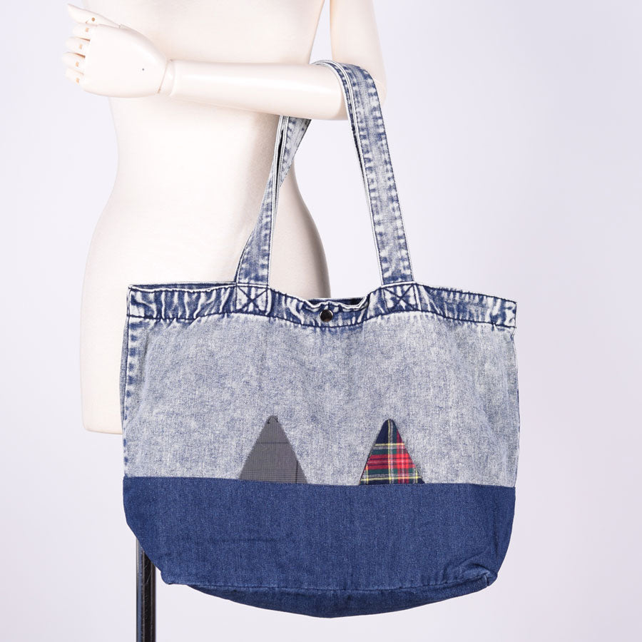 色落ち具合の違うデニムを組み合わせて作ったトートバッグ。