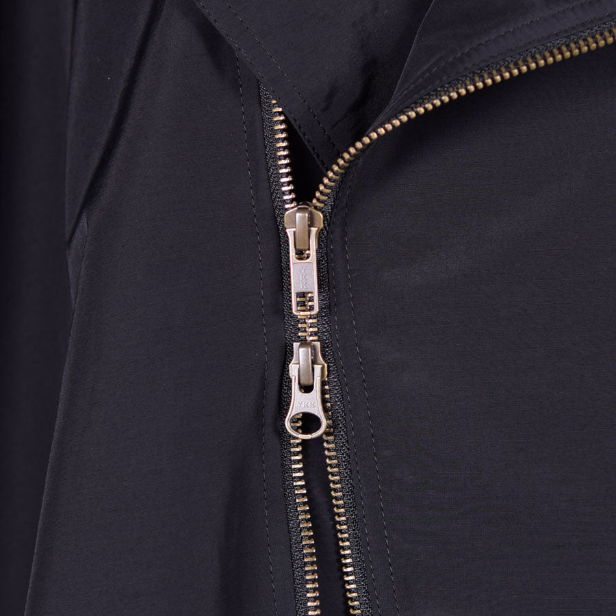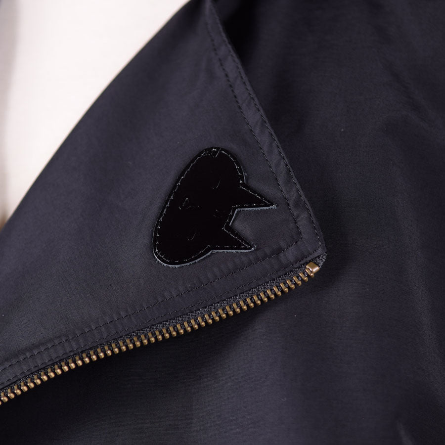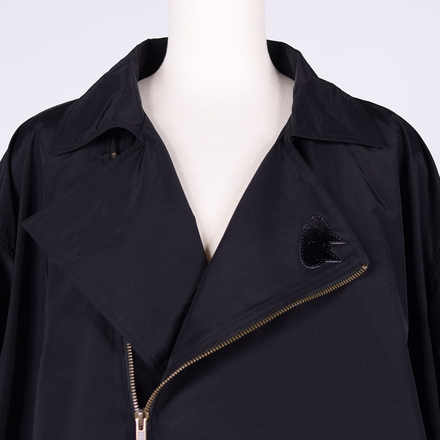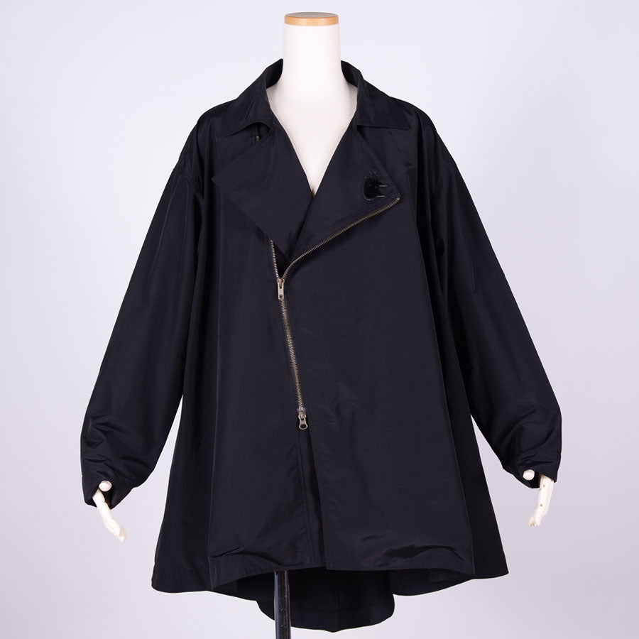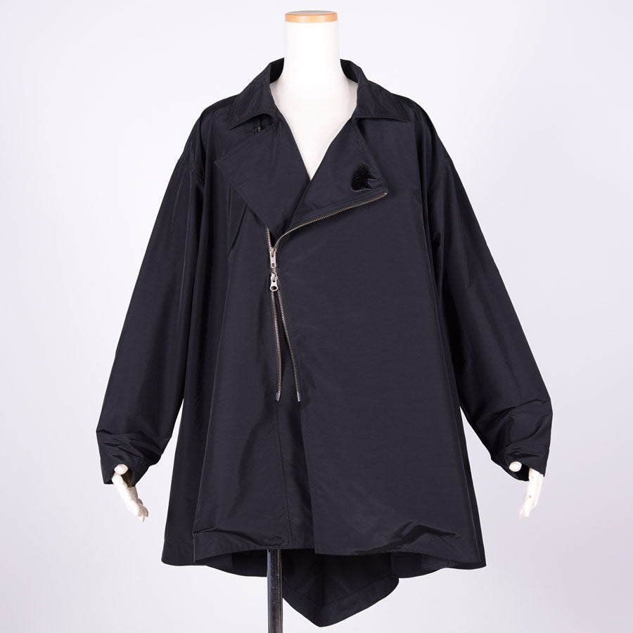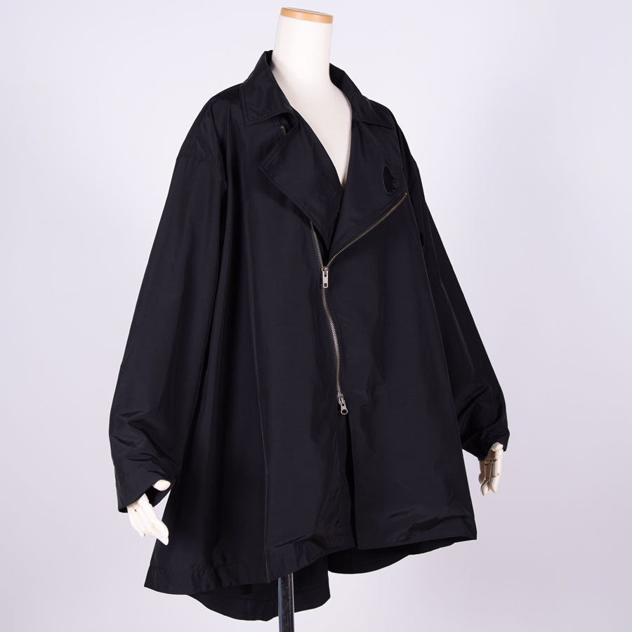 衿にライダースジャケットのディティールを取り入れた薄手のジャケット。