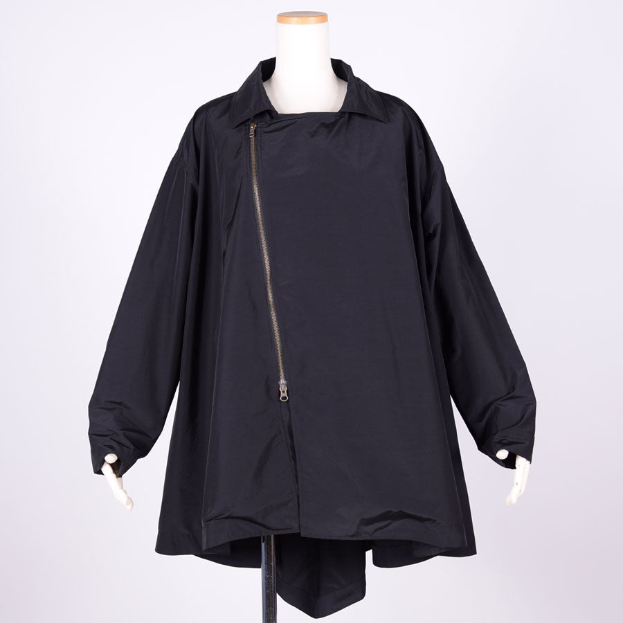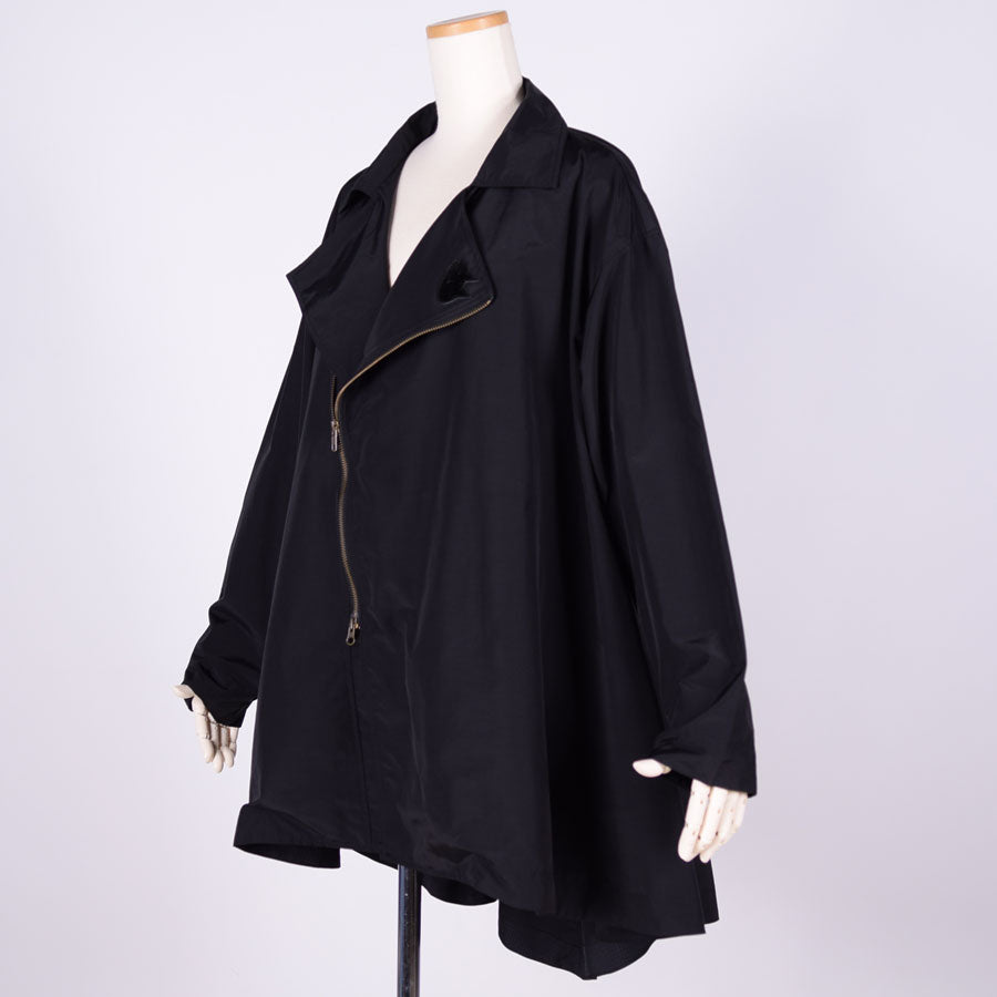 身頃に大胆にドレープを入れたオリジナリティのあるシルエットが個性的なアイテムです。