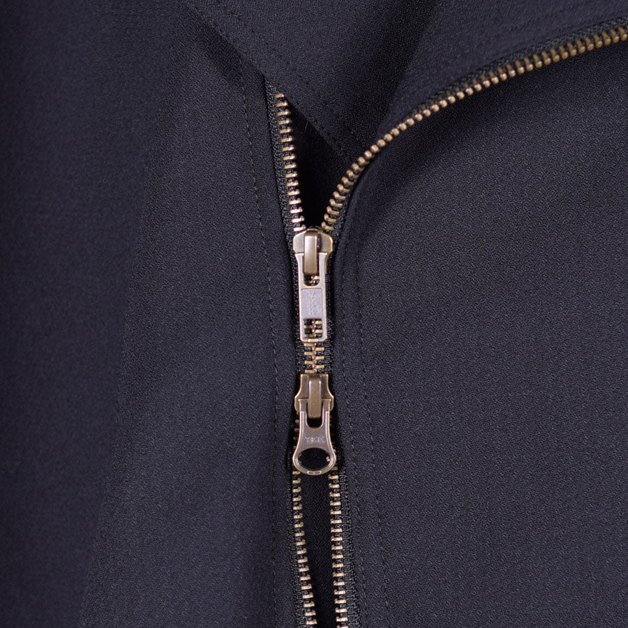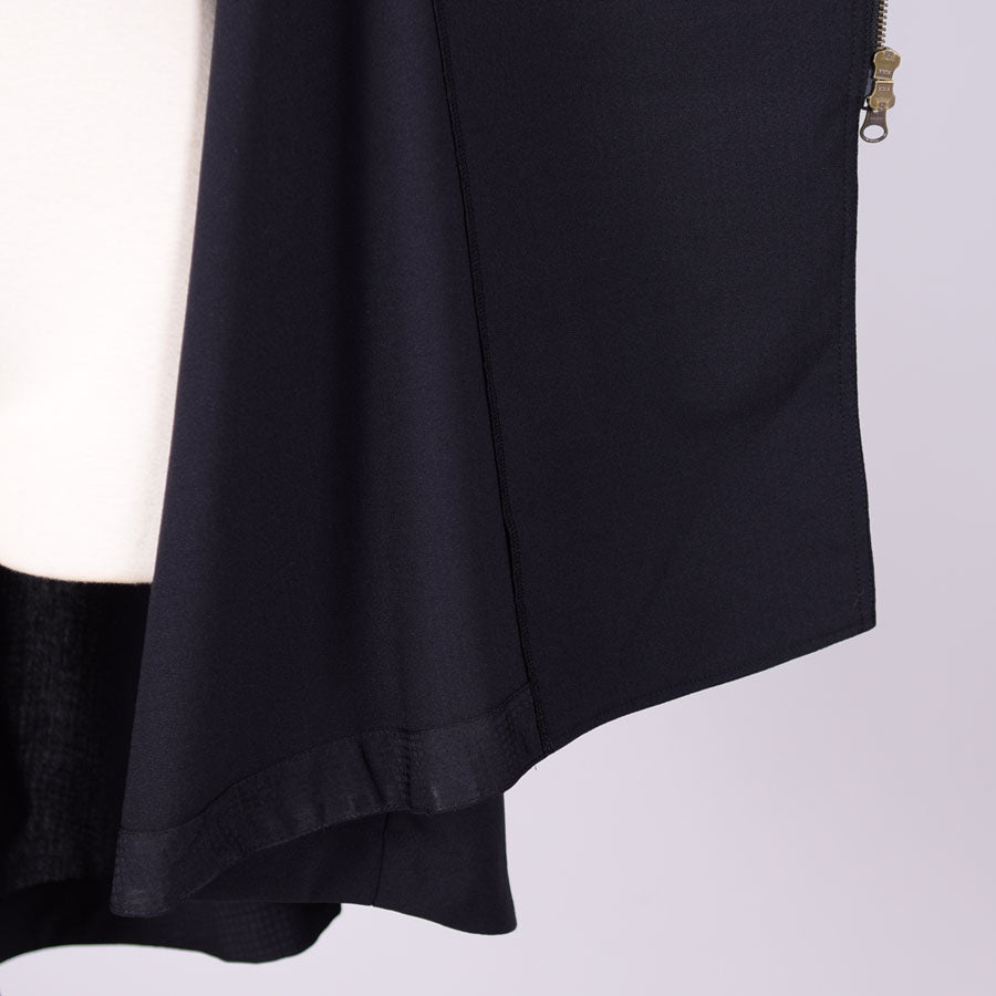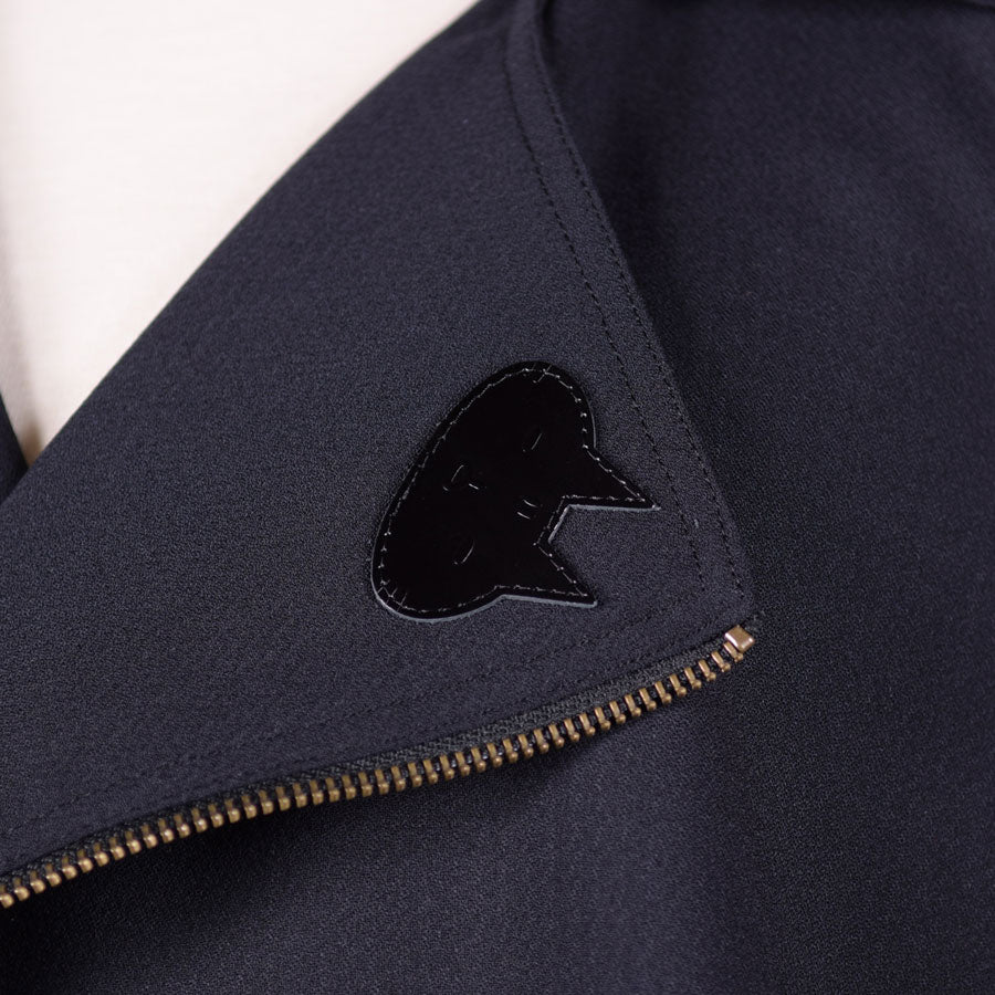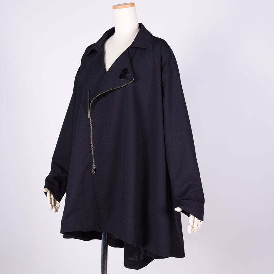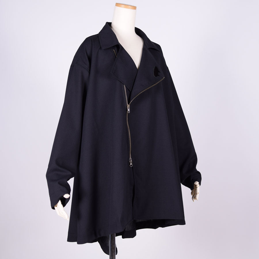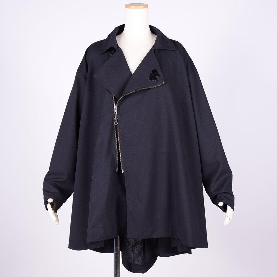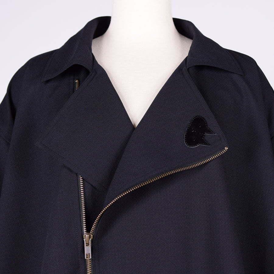 衿にライダースジャケットのディティールを取り入れた薄手のジャケット。