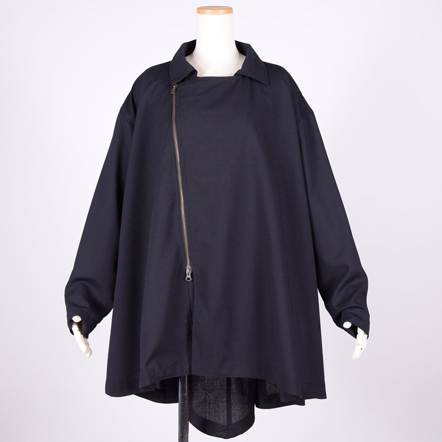 身頃に大胆にドレープを入れたオリジナリティのあるシルエットが個性的なアイテムです。