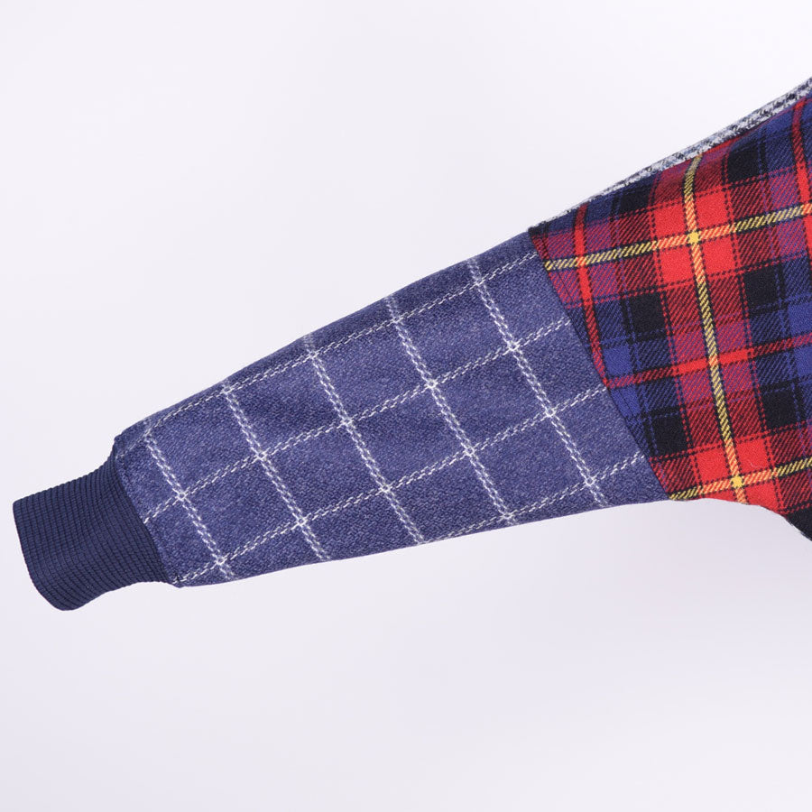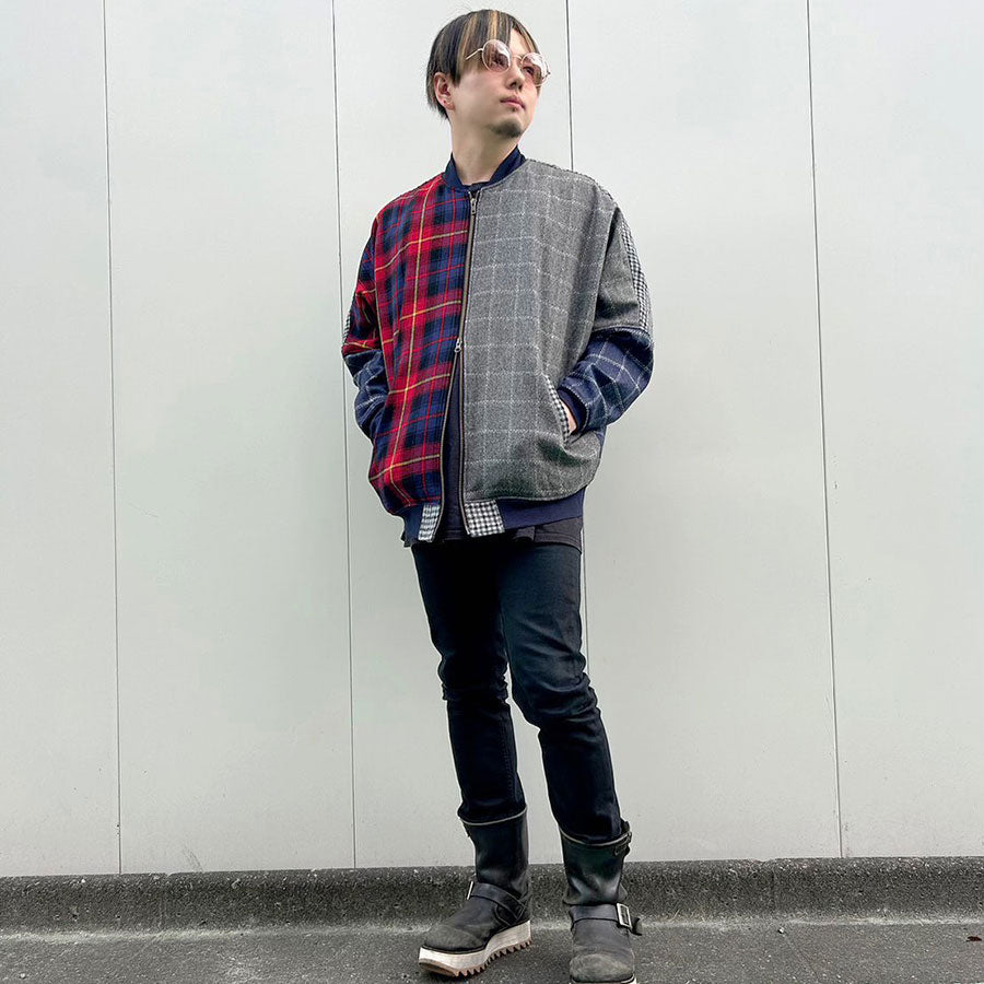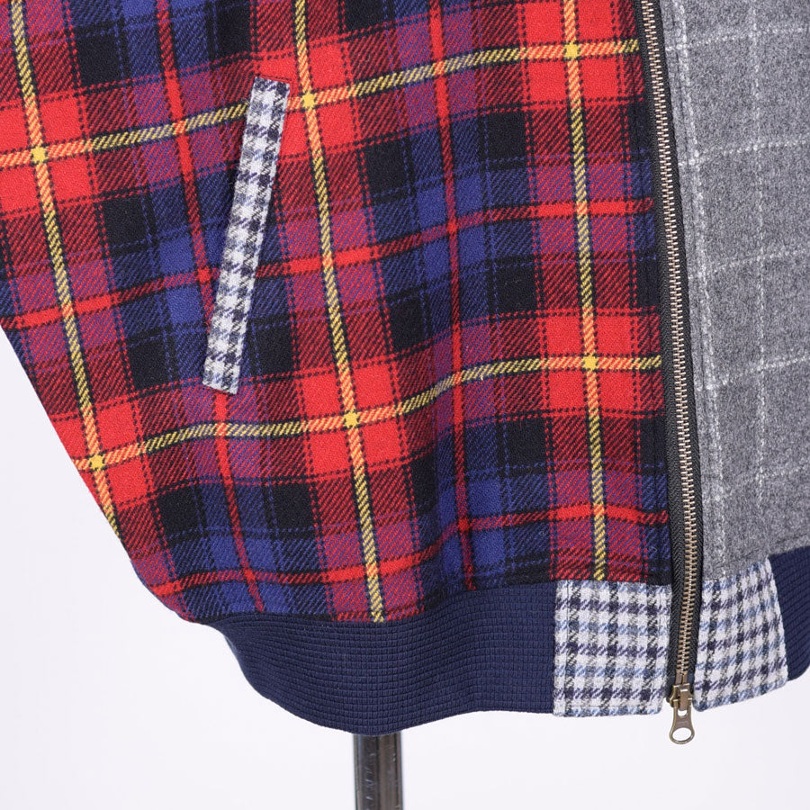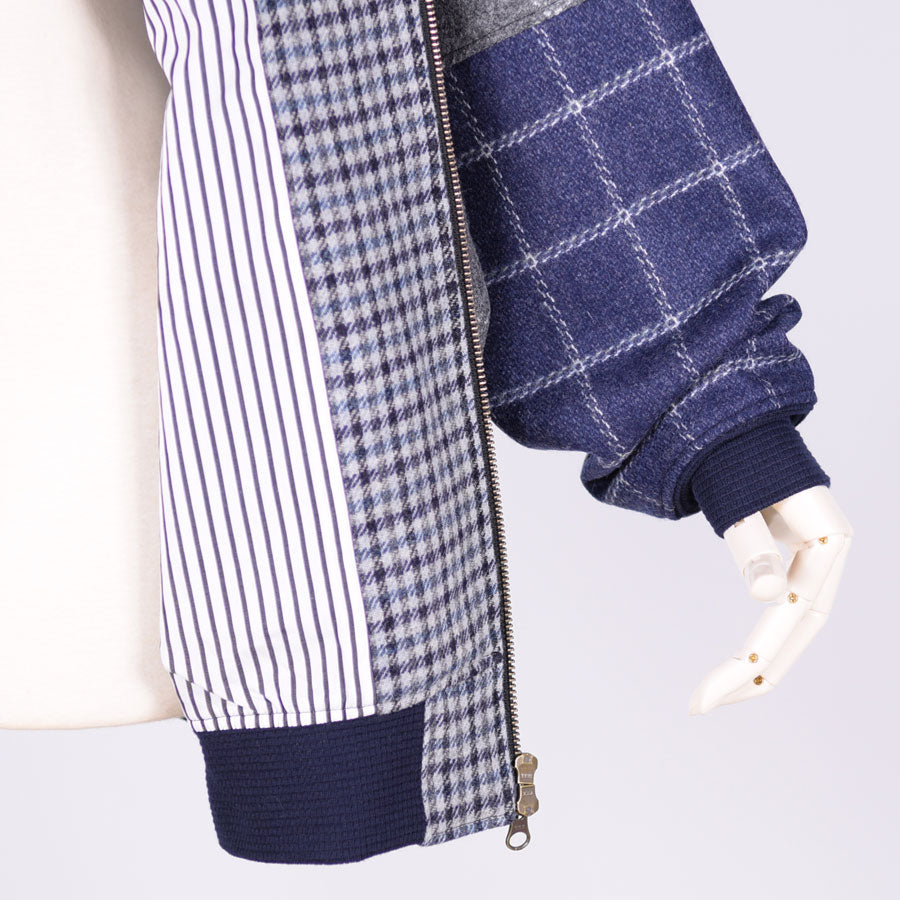 パーツごとに様々な生地で切り替えて仕立てたブルゾン。