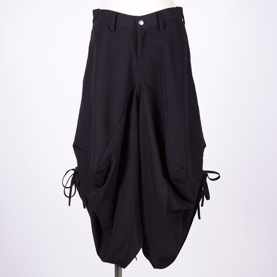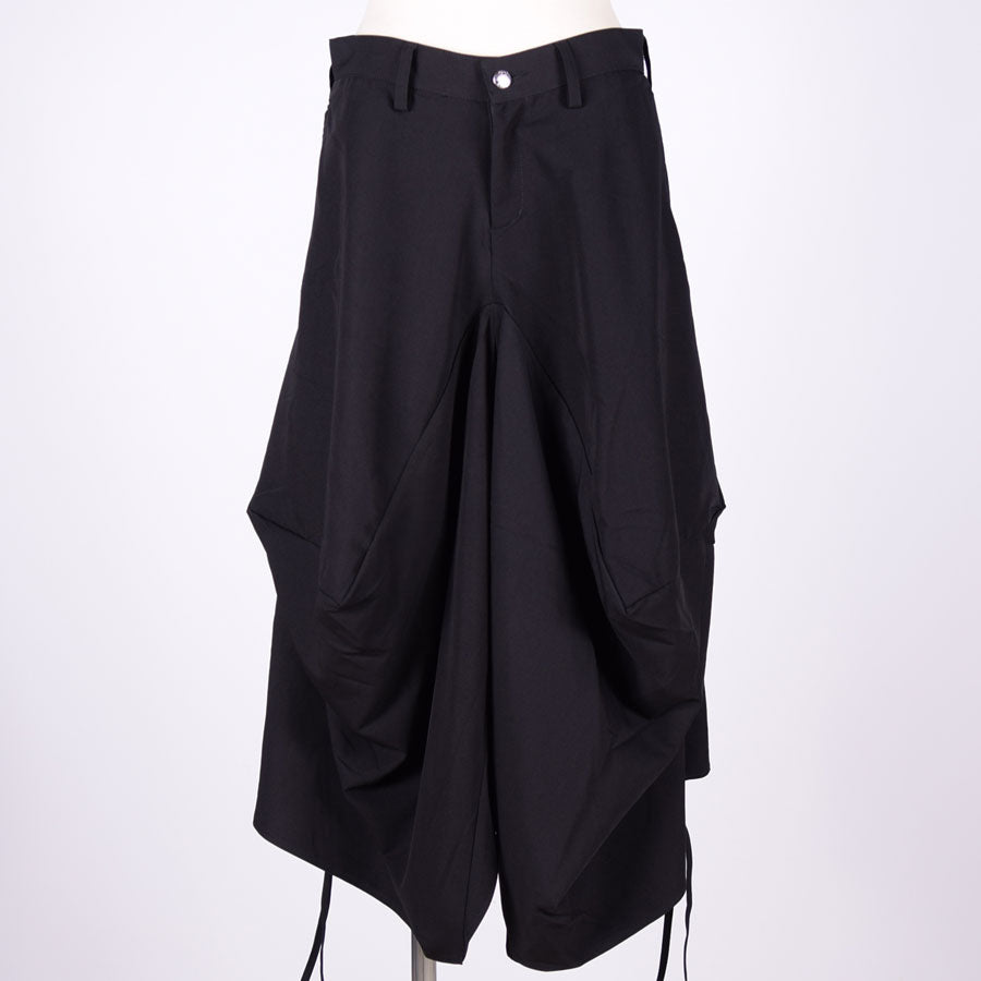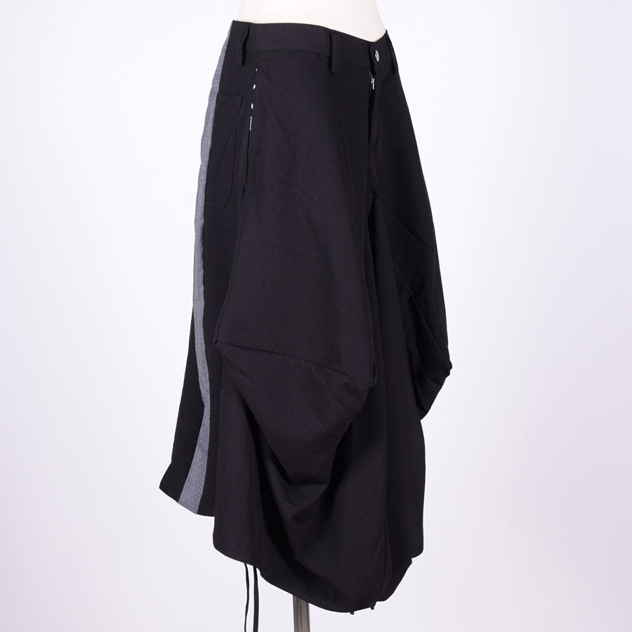 直線を複雑に組み合わせて立体的なシルエットを生み出したスカート。