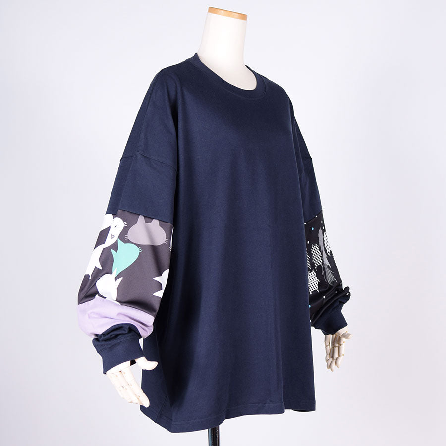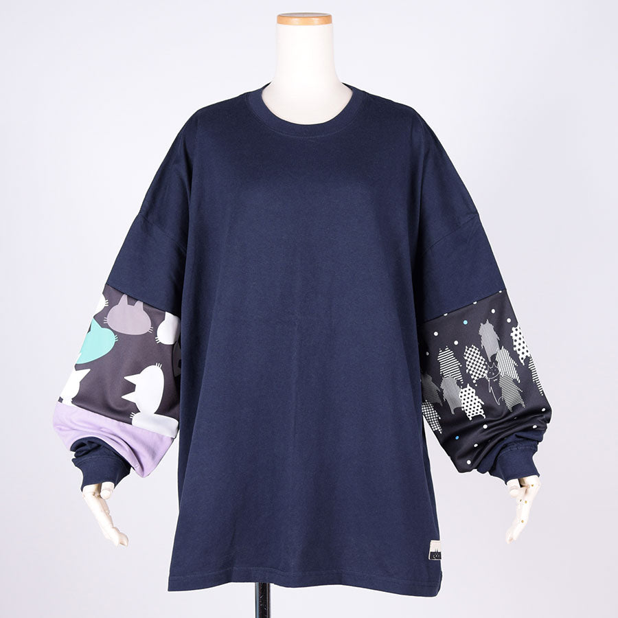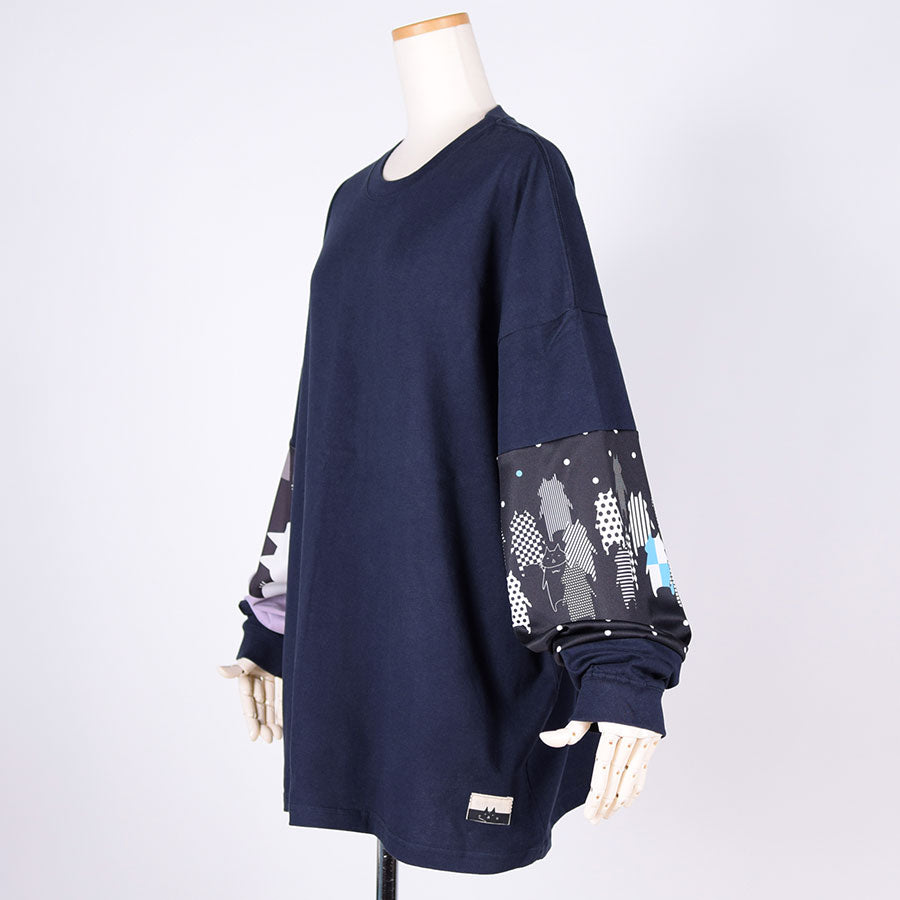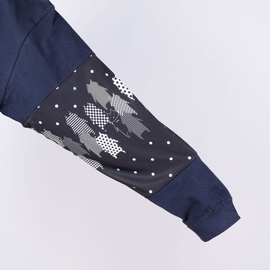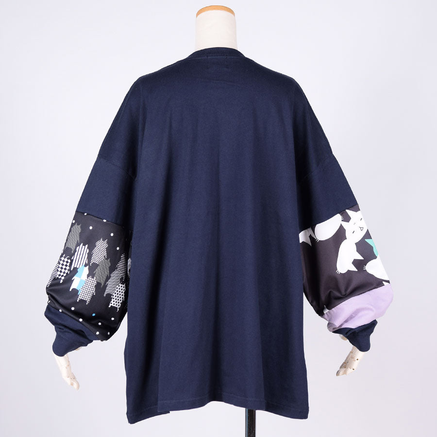 袖を色んなプリント生地でパッチワークしたカットソー。
